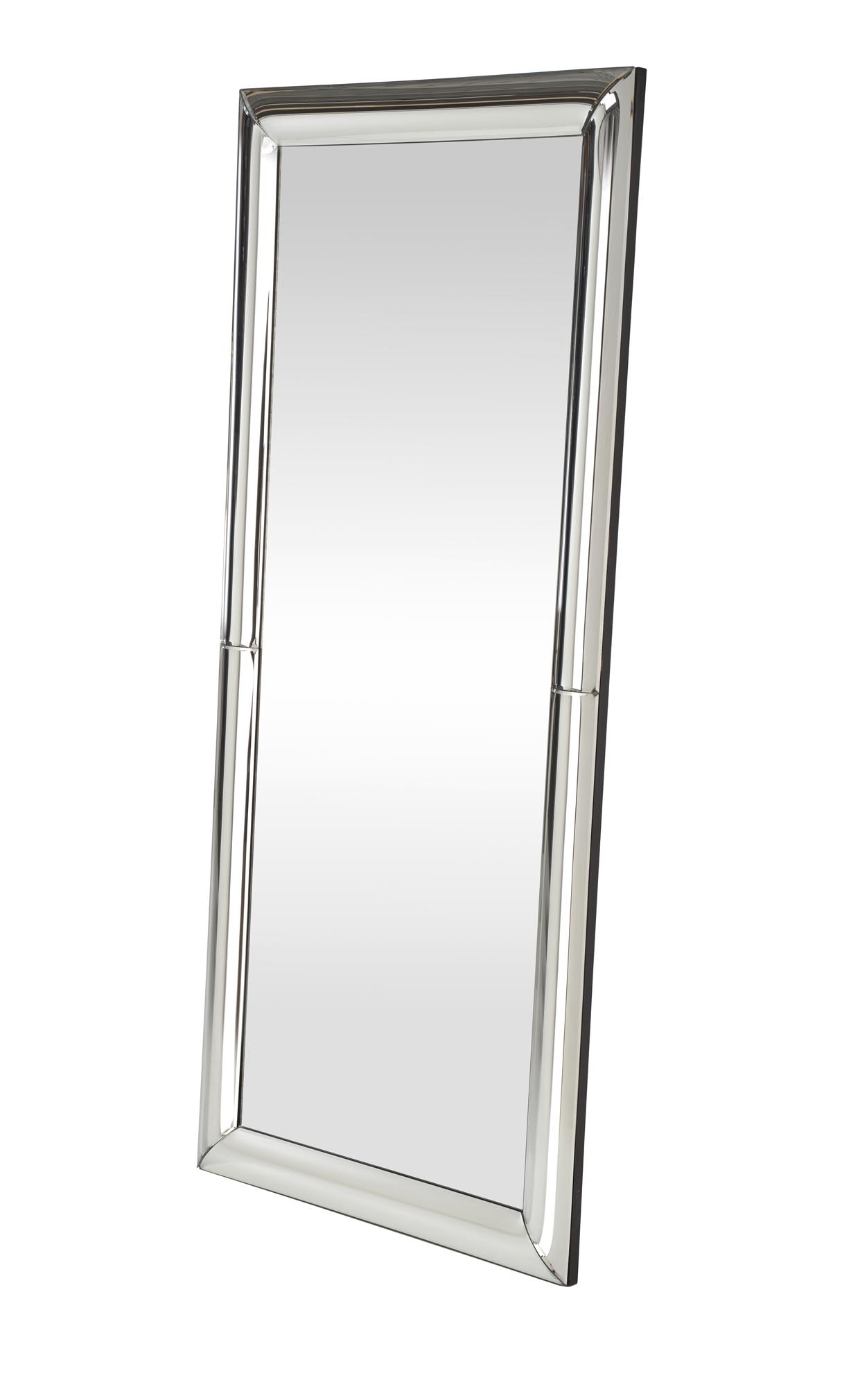 lustro ścienne, wymiary: 162/72/2,5 cm, materiał: rama – szkło gięte, fazowane / podkład – płyta MDF, lustro, kolor: srebrny