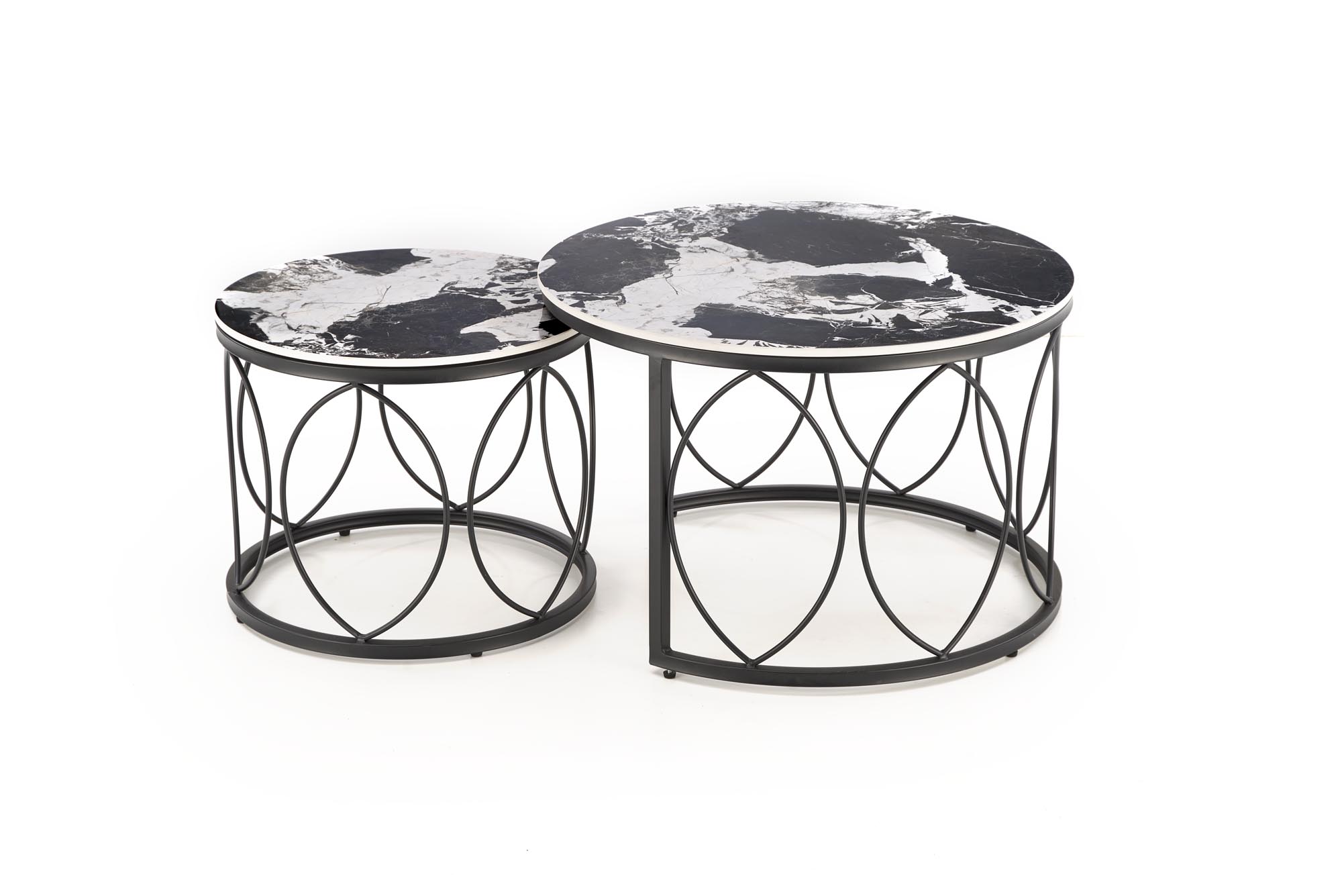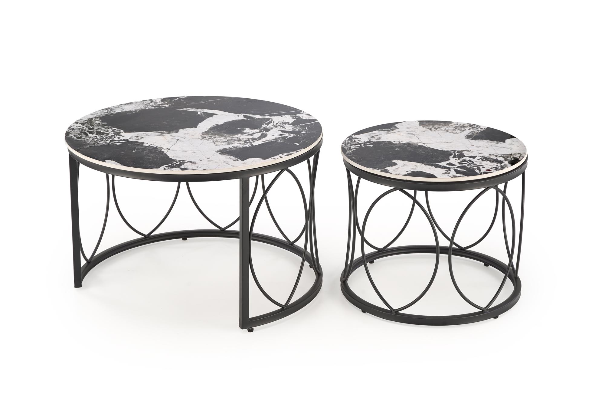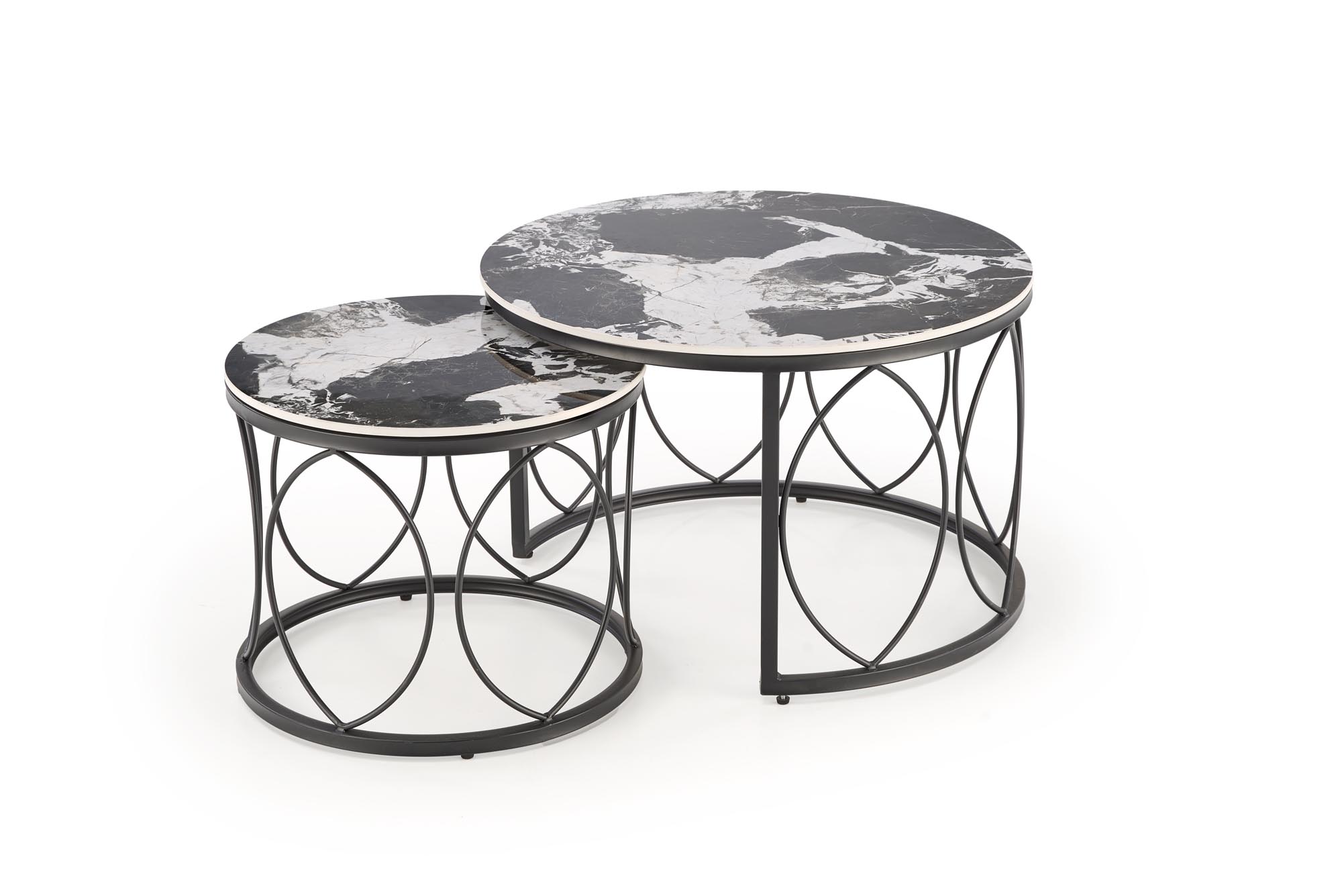 wymiary: 70/46 oraz 50/41 cm; zestaw 2 ław, materiał: spiek / stal malowana proszkowo, kolor: czarny marmur / czarny