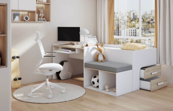 ARIZA łóżko z wysuwanym dodatkowym materacem, biały
