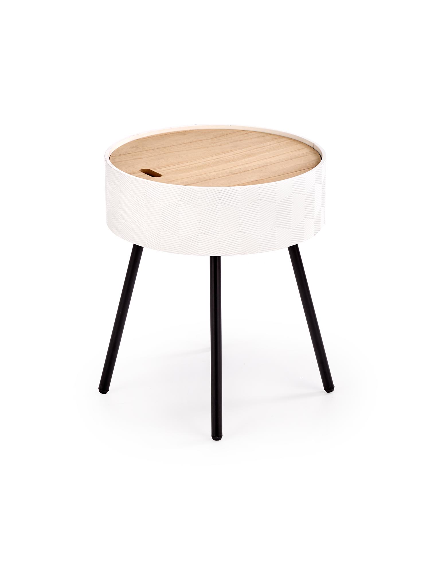 wymiary: 38/45 cm, materiał: MDF lakierowany / MDF + okleina naturalna / stal malowana proszkowo, kolor: biało – czarny