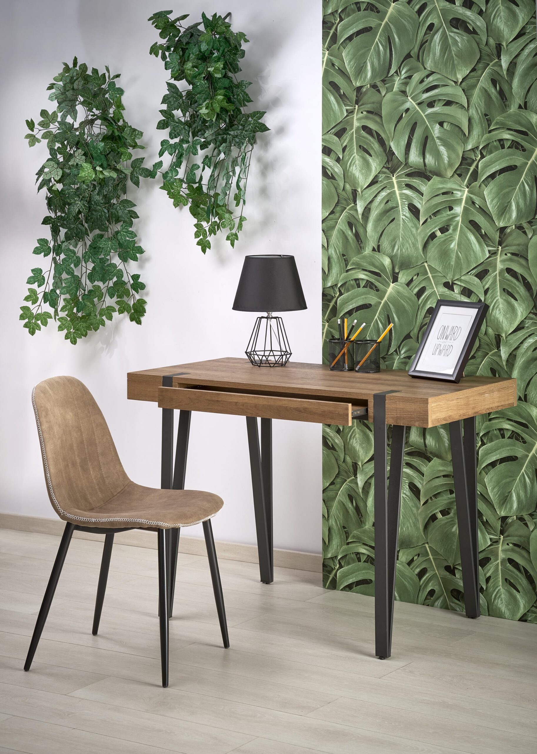 wymiary: 110/55/76 cm, materiał: MDF laminowany / stal malowana proszkowo, kolor: orzech miodowy – czarny