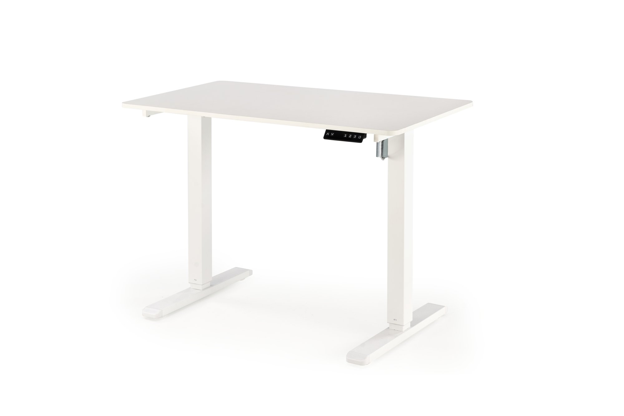 wymiory: 105/56/73-118 cm; biurko z funkcją regulacji wysokości, materiał: płyta meblowa okleinowana – melamina / stal malowana proszkowo, kolor: biały