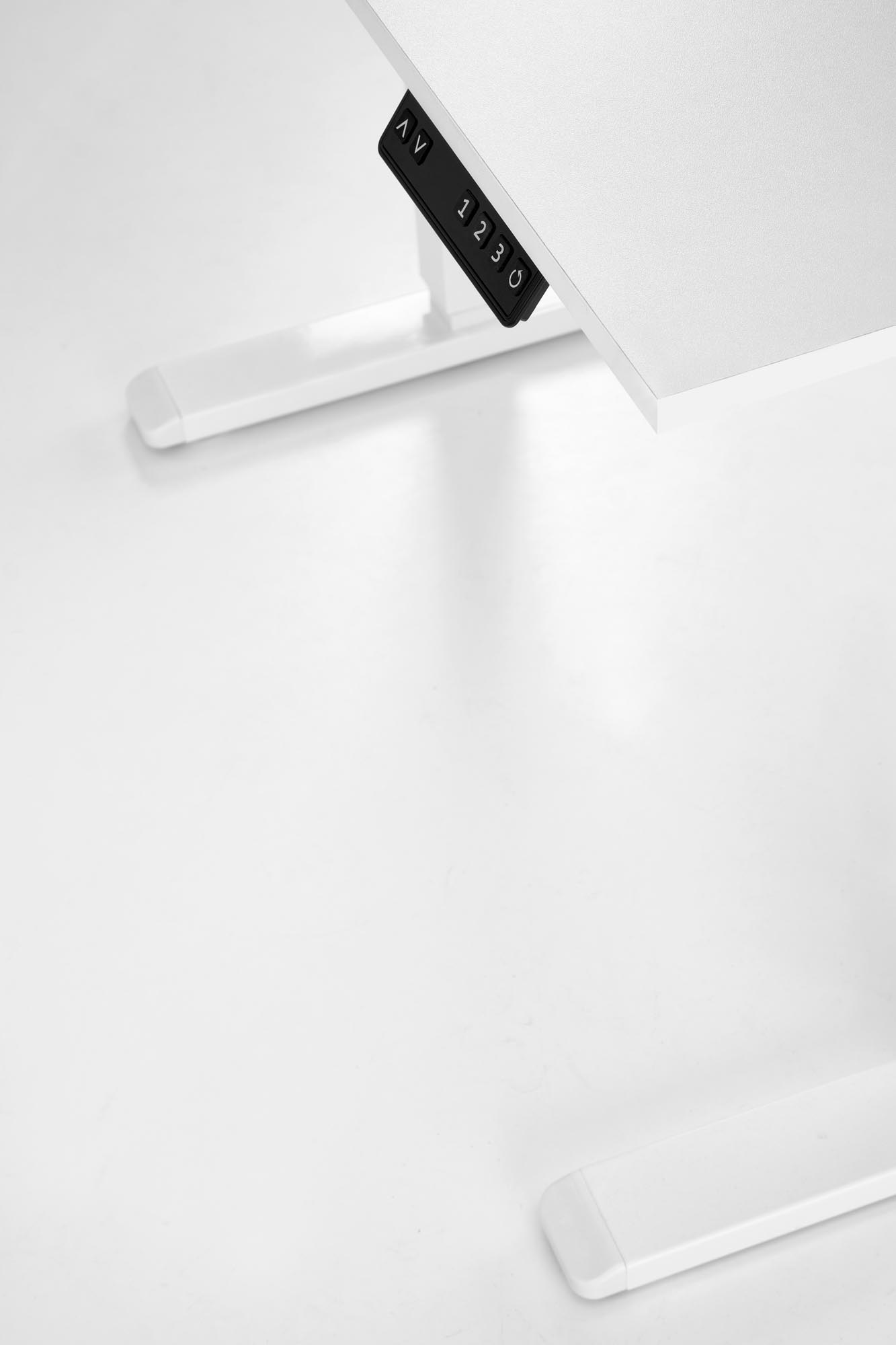 wymiary: 105/56/73-118 cm; biurko z funkcją regulacji wysokości, materiał: płyta meblowa laminowana – melamina / stal malowana proszkowo, kolor: biały