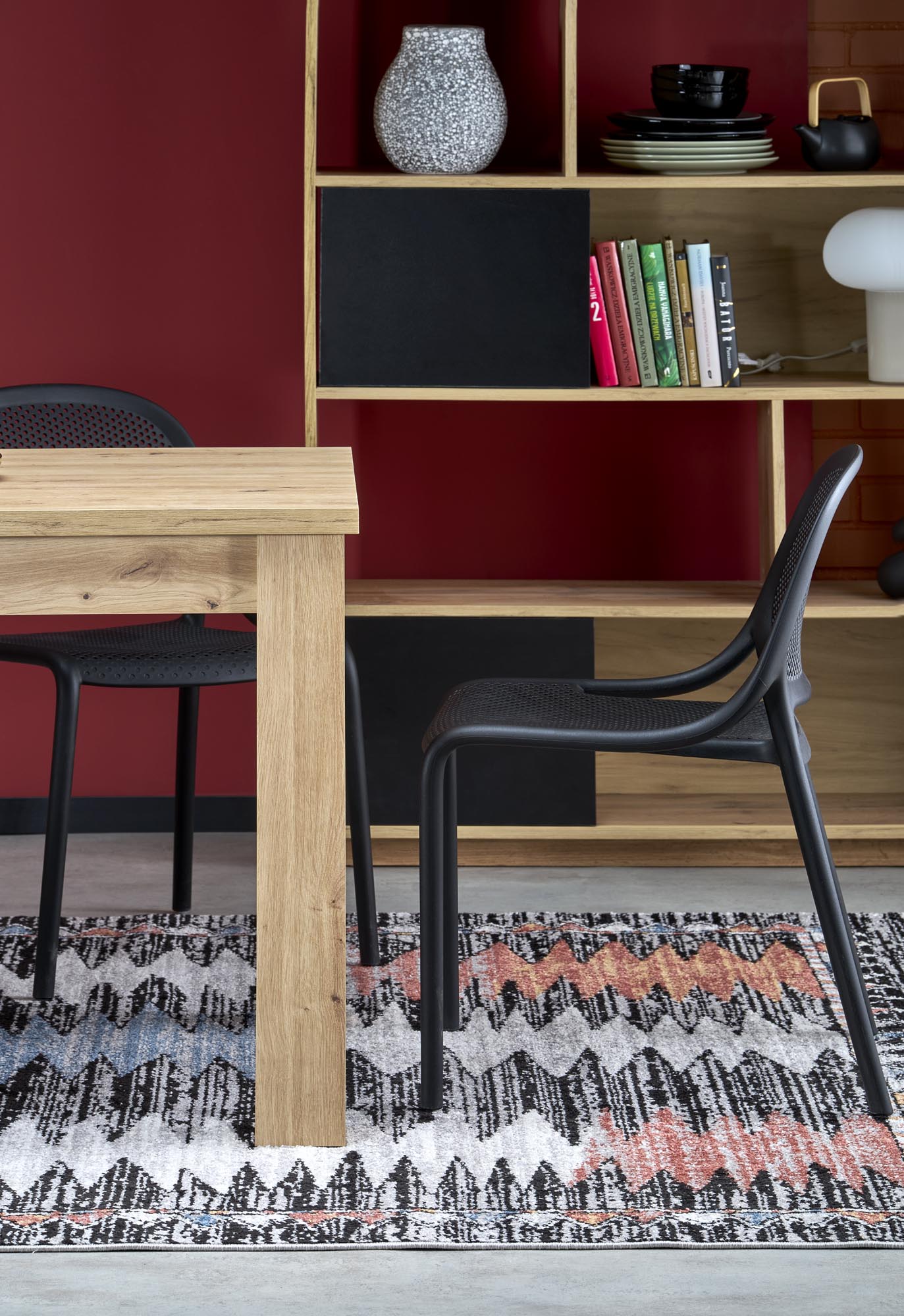 wymiary: 120-160/80/77/95 cm; stół rozkładany, materiał: płyta meblowa laminowana, kolor: blat – dąb artisan, nogi – dąb artisan