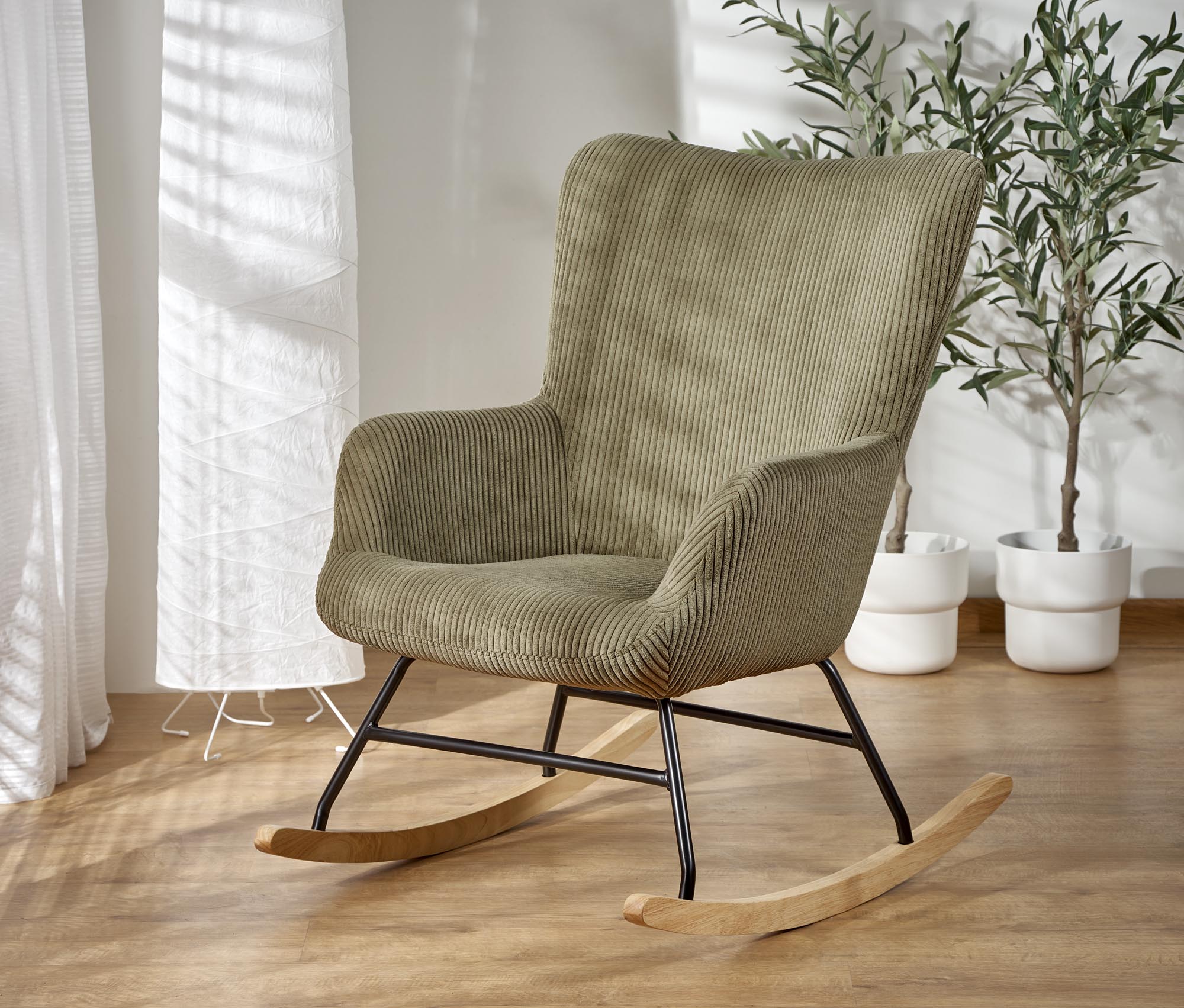 wymiary: 72/88/98/45 cm; materiał: tkanina sztruks – HYPER / stal malowana proszkowo / drewno lite, kolor oliwkowy HYPER#75