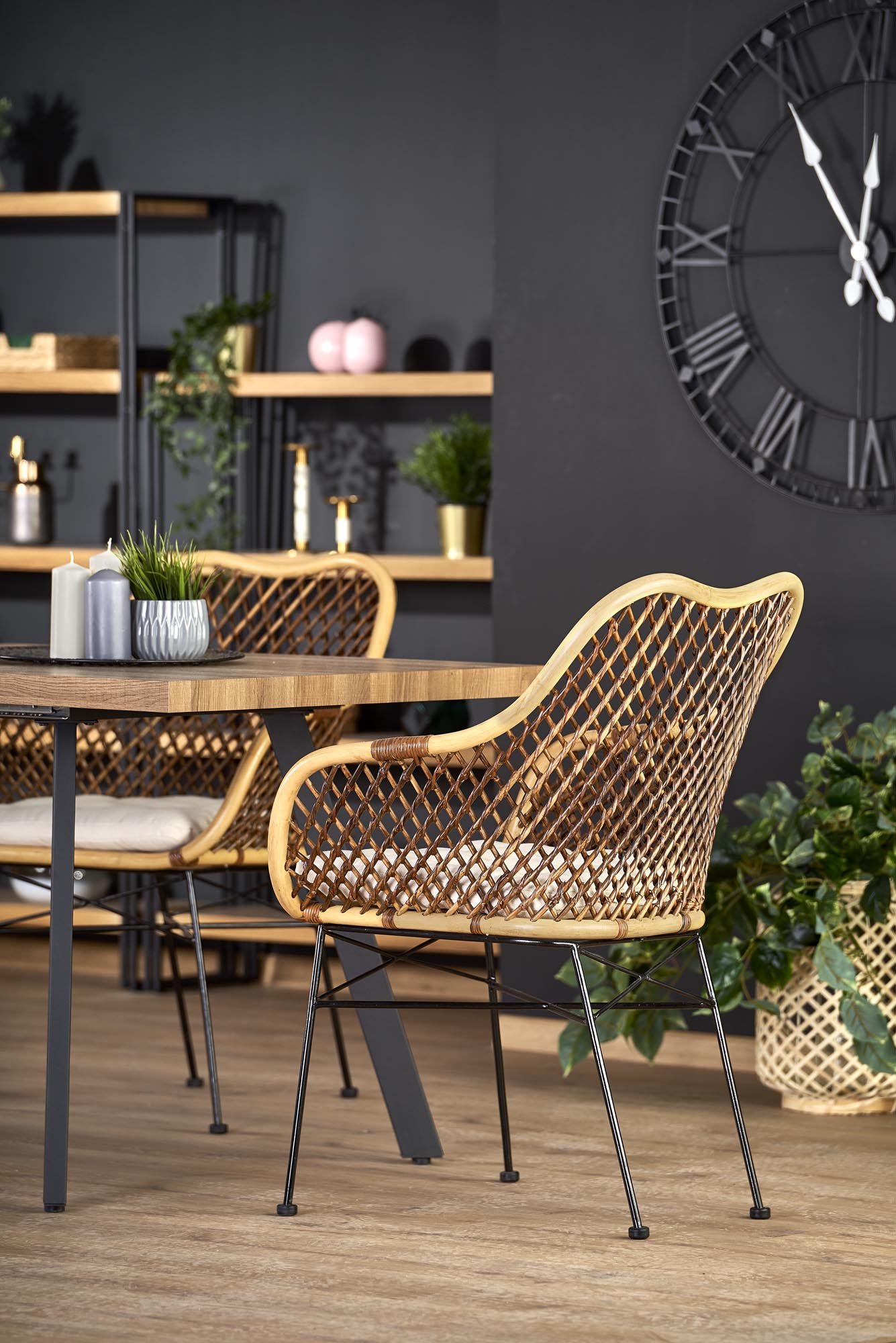 wymiary: 140÷180/85/76 cm, stół rozkładany, materiał: MDF laminowany / stal malowana proszkowo, kolor: blat – orzech miodowy, nogi – czarny