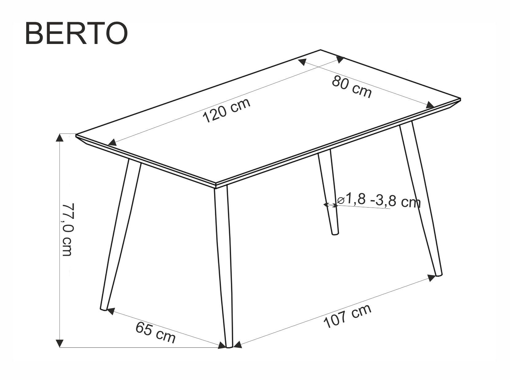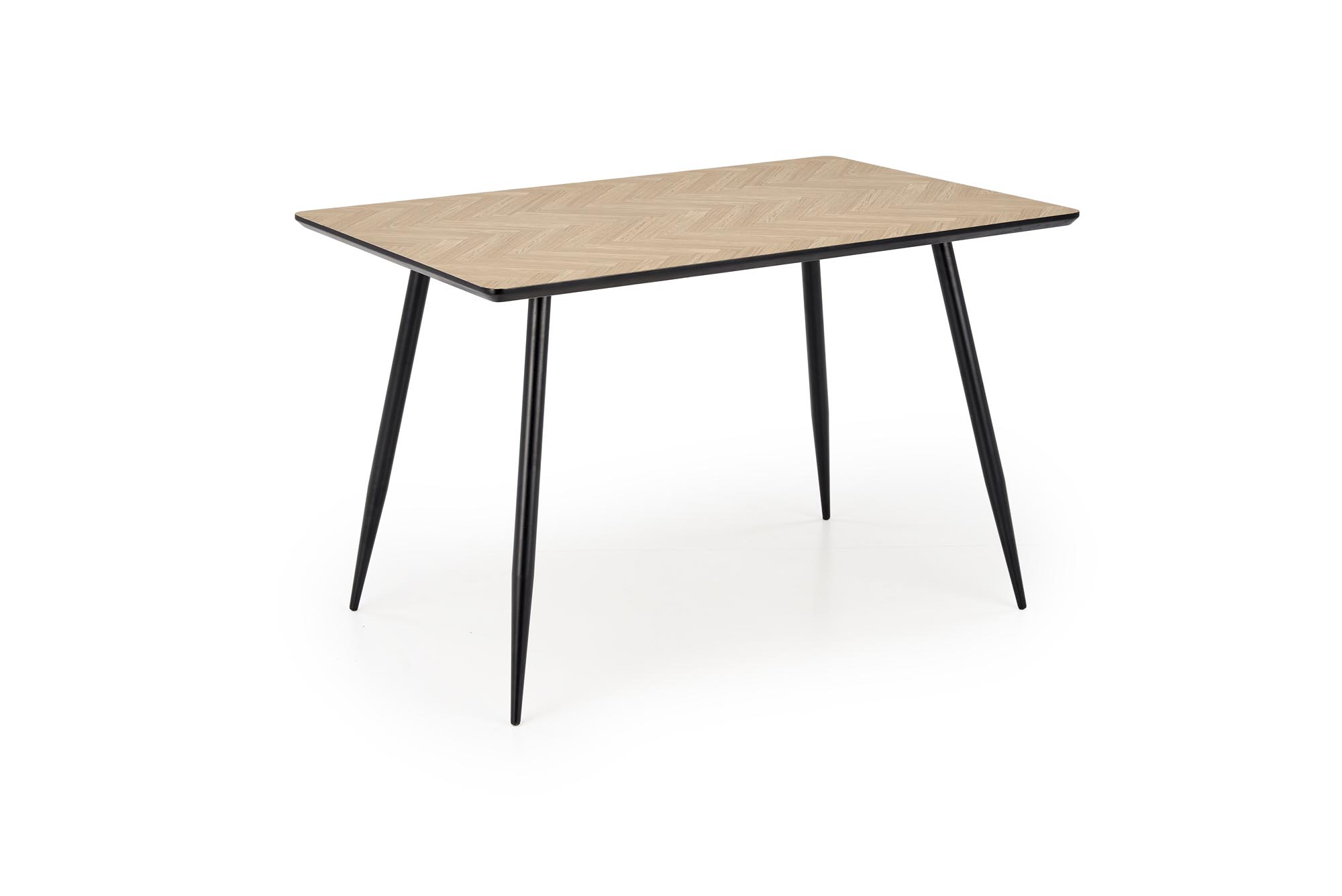 wymiary: 120/80/77/107 cm; materiał: MDF okleinowany / stal malowana proszkowo, kolor: blat – naturalny, nogi – czarny