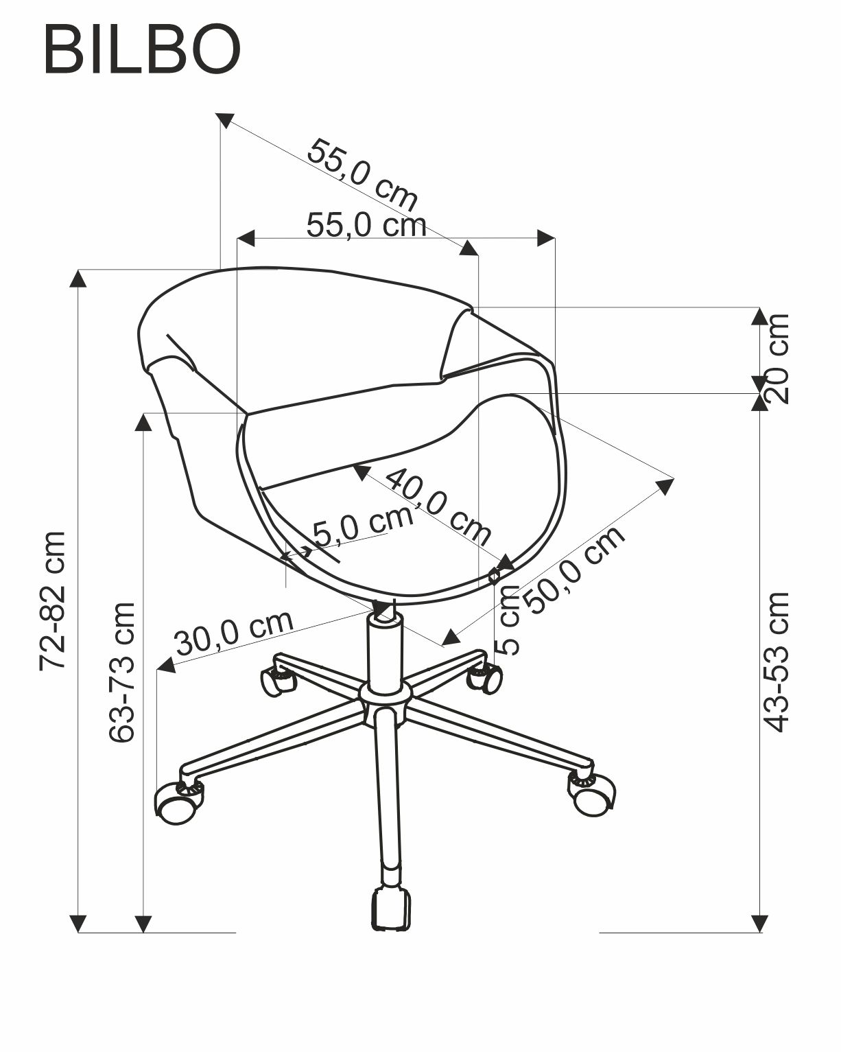 wymiary: 55/55/72-82/43-53 cm; mechanizm podstawowy, sklejka gięta / eco skóra, kolor: orzechowy – czarny