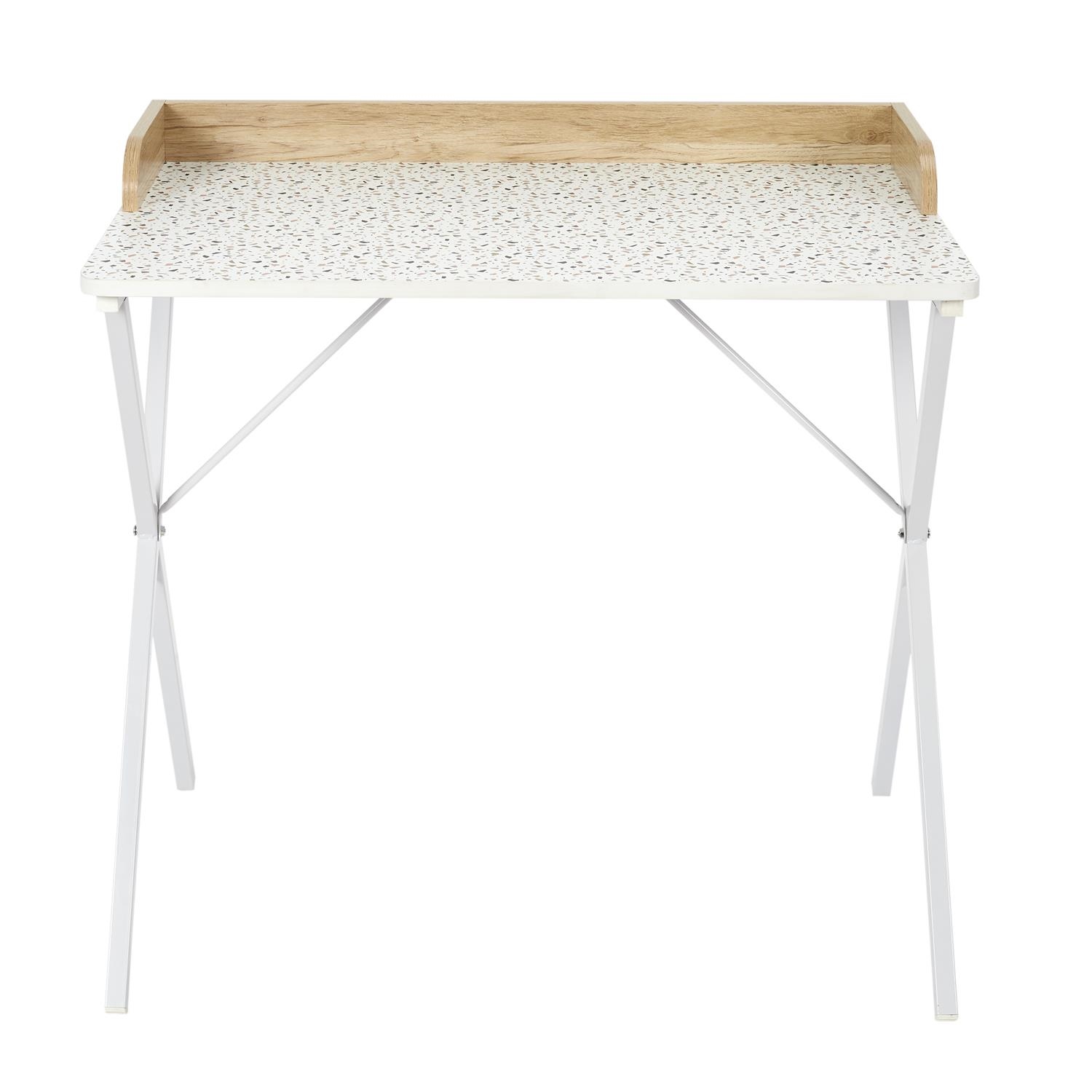 Pracuj z uśmiechem przy biurku Brice we wzór lastryko. Jego elegancki, nowoczesny design z charakterystycznym wzorem lastryko dodaje stylu i świeżości każdemu wnętrzu. Solidna konstrukcja i przestronny blat zapewniają wygodę i funkcjonalność, idealnie komponując się w biurze, domowym gabinecie lub przestrzeni roboczej. Długość produktu: 84,4 cm Wysokość produktu: 50 cm Głębokość produktu: 80 cm Materiał blatu: Drewno – MDF Materiał nóg: Metal – żelazo