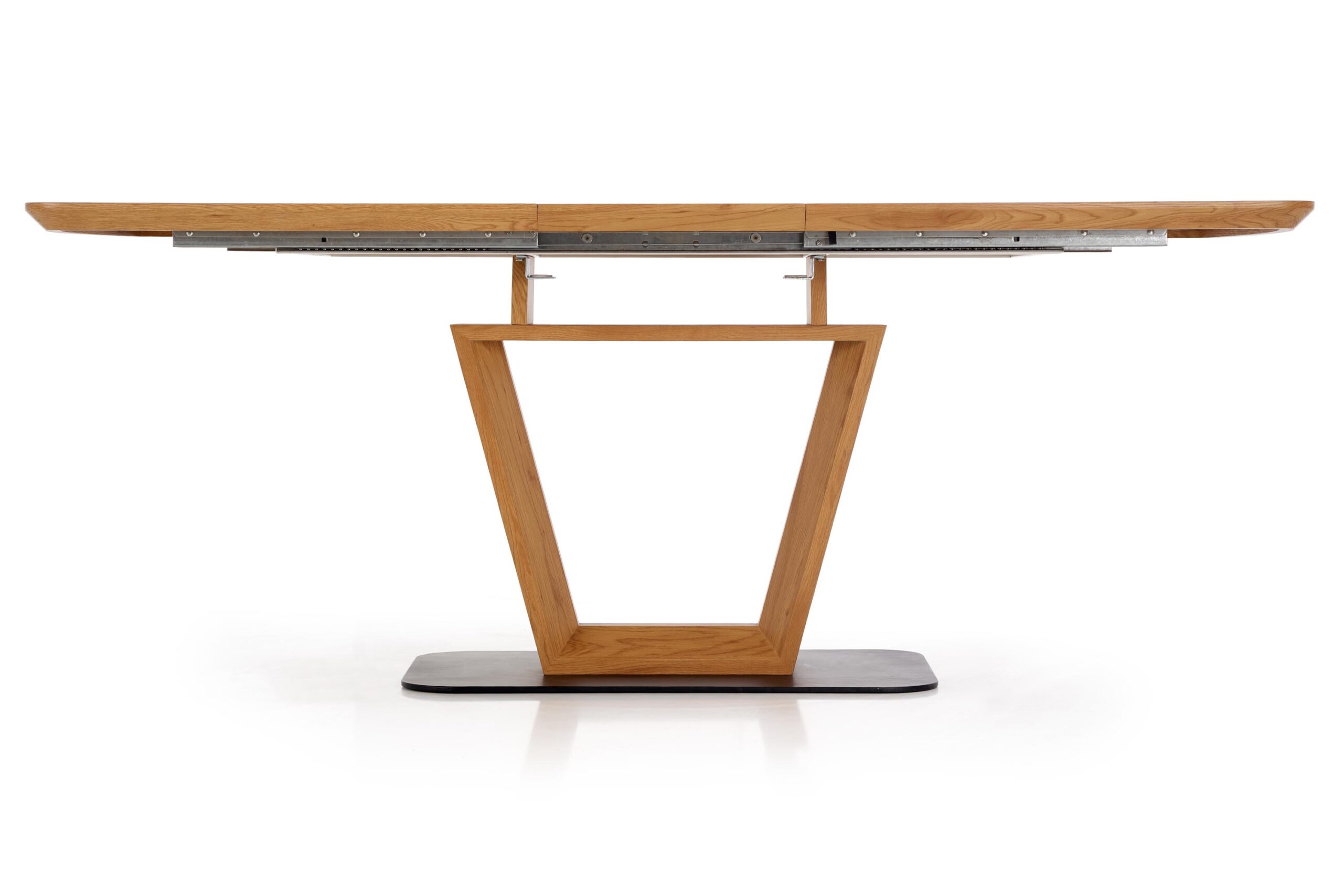 stół rozkładany, wymiary: 160-220/90/76 cm, materiał: MDF laminowany / stal malowana proszkowo, kolor: dąb złoty – czarny