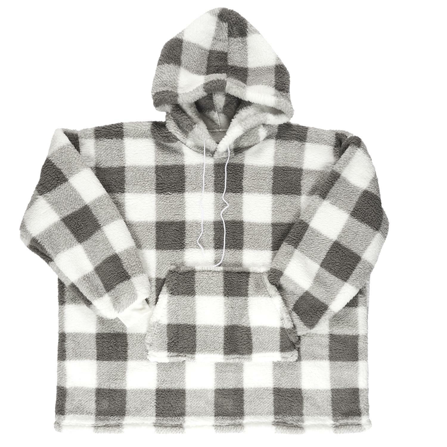 Długa bluza sherpa w kratę to idealne nakrycie na długie, zimowe wieczory. Bluza snuddie wyposażona została w kaptur ze ściągaczem oraz kieszeń z przodu. Bardzo miły i ciepły w dotyku materiał gwarantuje długie komfortowe wieczory filmowe. Prać w temp max 30 stopni. Nie prasować. Gramatura tkaniny 240g/m2 tkanina 100% poliester