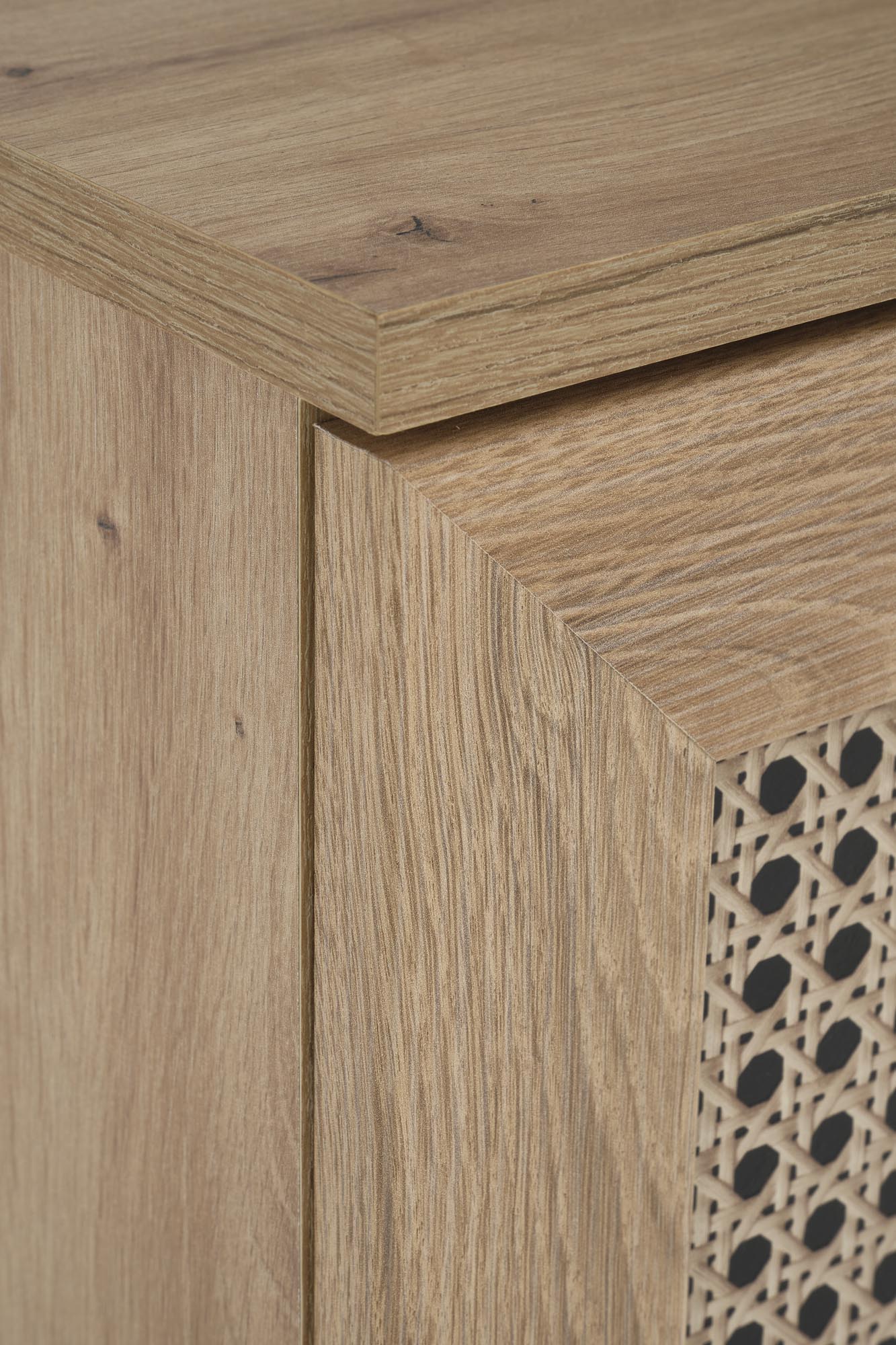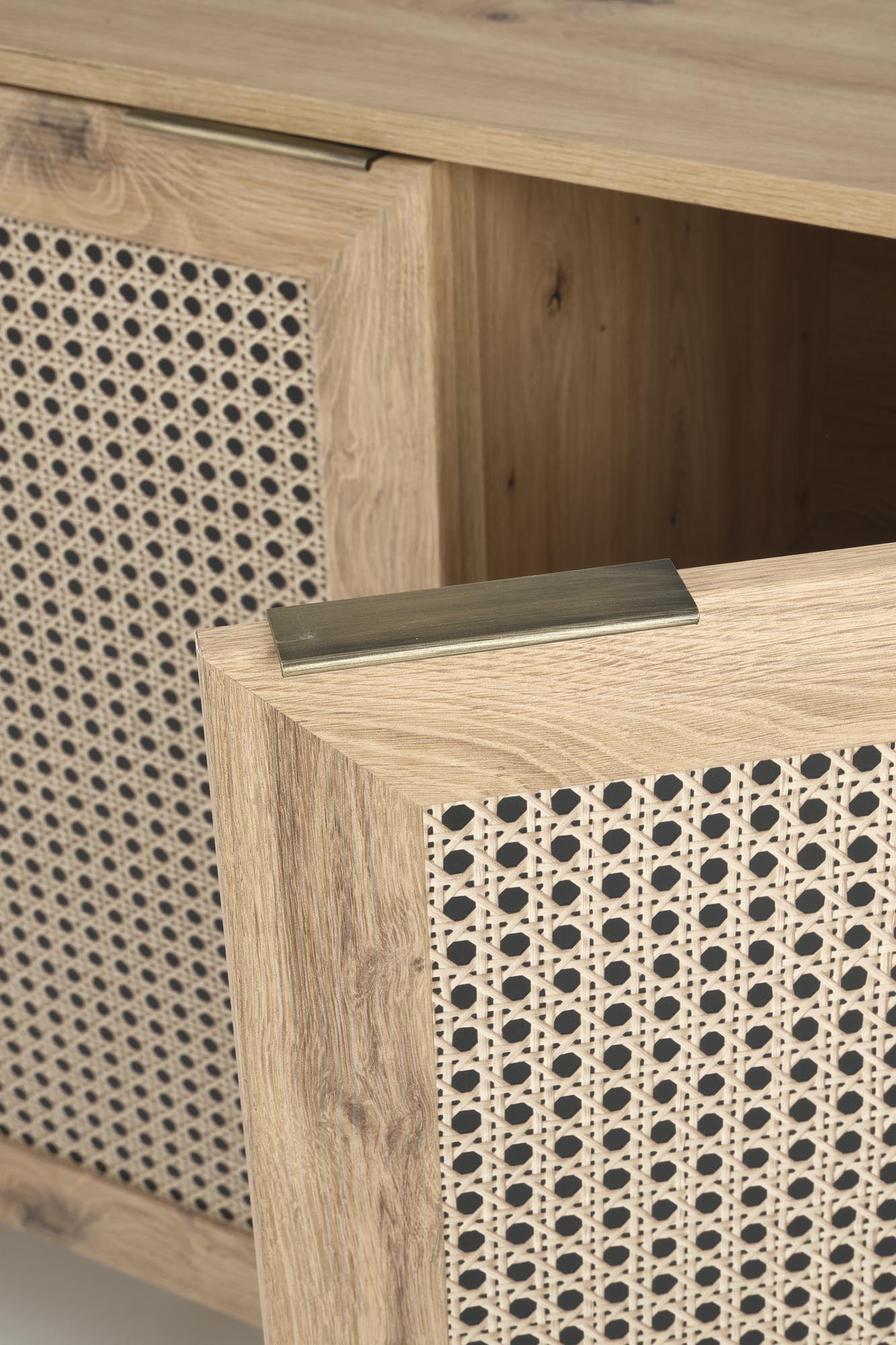komoda, wymiary: 80/40/85 cm, materiał: płyta meblowa laminowana / MDF laminowany / płyta HDF laminowana / polipropylen, kolor: dąb artisan – naturalny Uwaga: wzór plecionki jest nadrukowany