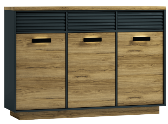 komoda, wymiary: 155/41/73 cm, materiał: płyta meblowa laminowana / MDF laminowany / polipropylen, kolor: czarny – złoty