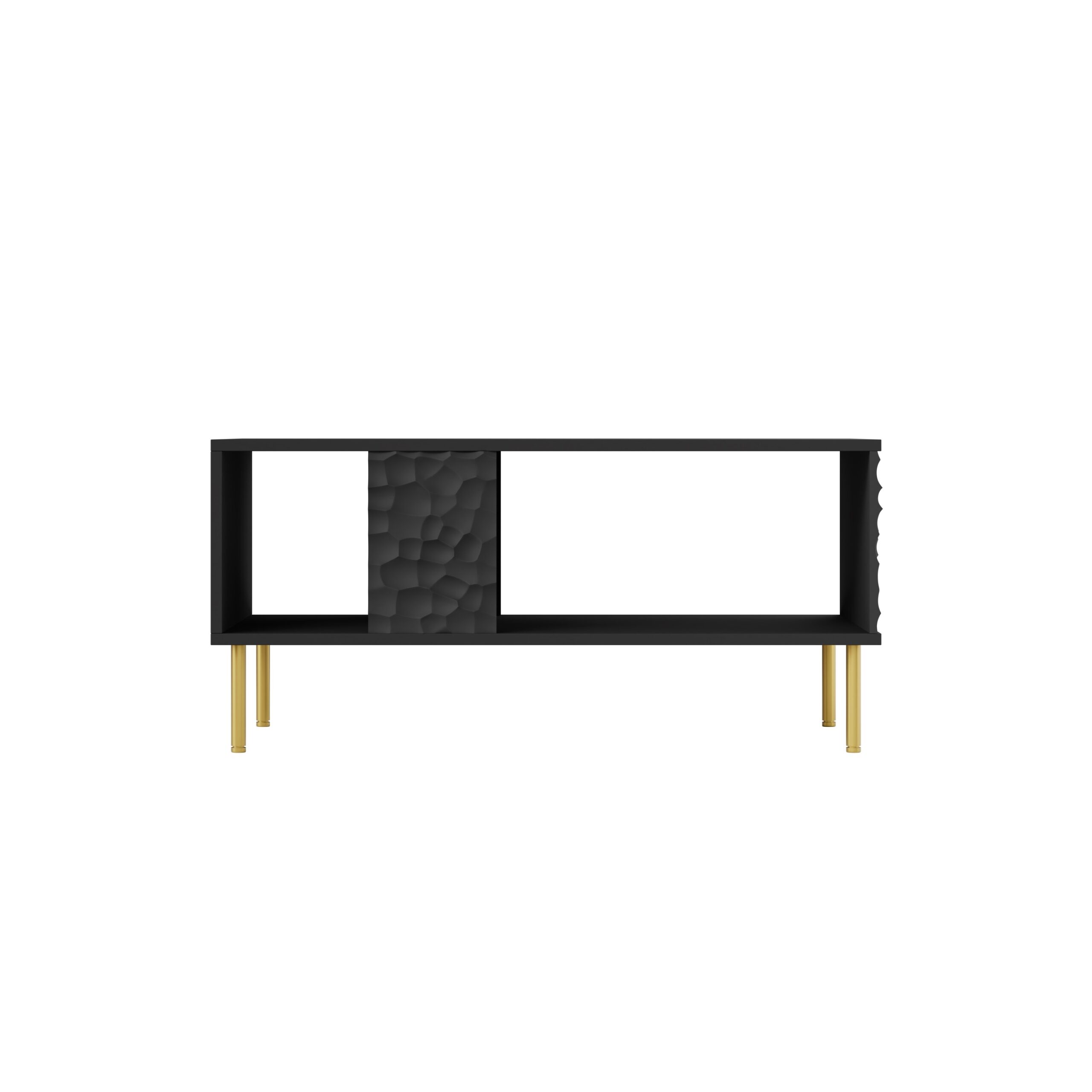 ława, wymiary: 92/50/43 cm, materiał: płyta meblowa laminowana / MDF laminowany / nóżki – metal, kolor: czarny – złoty