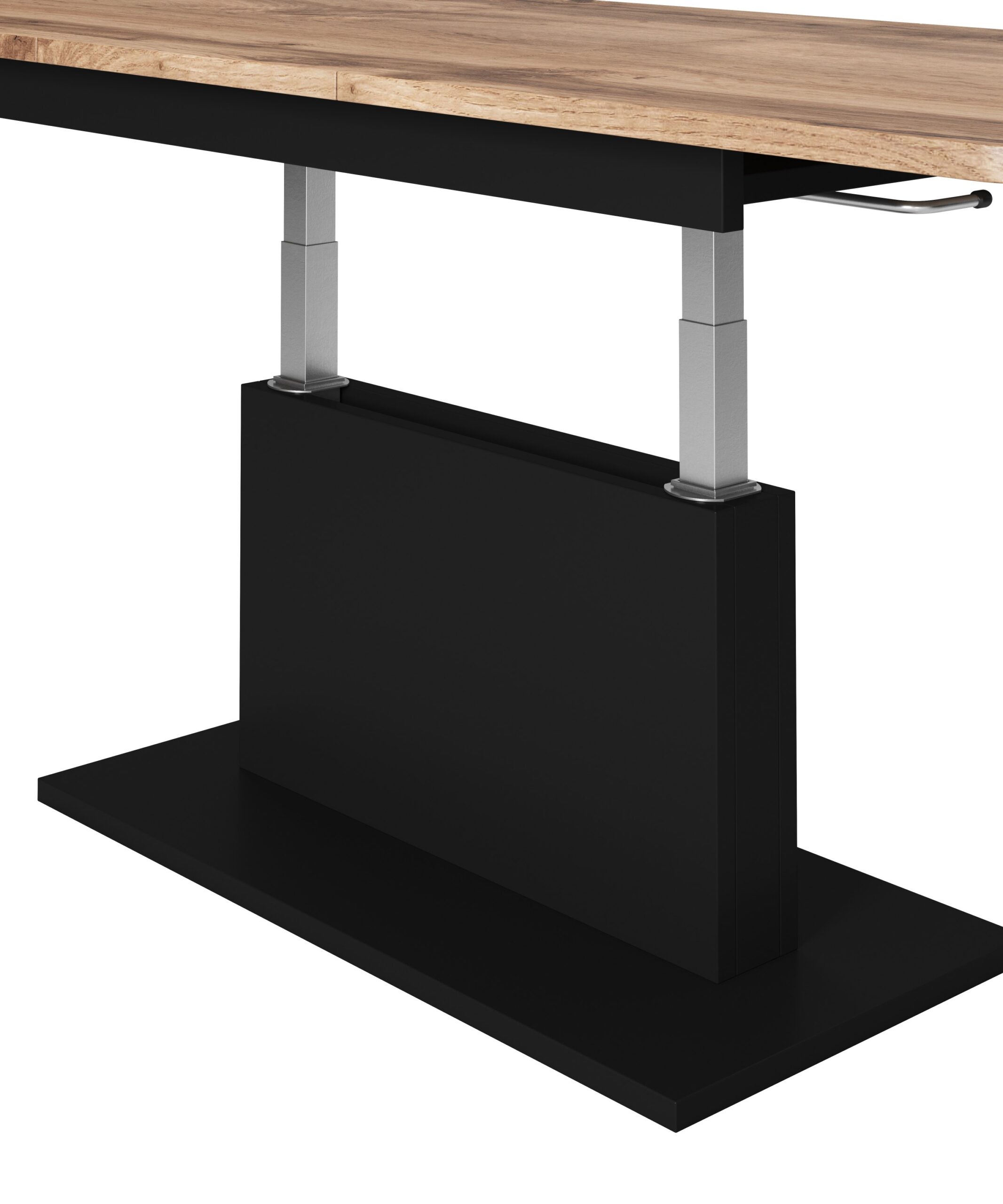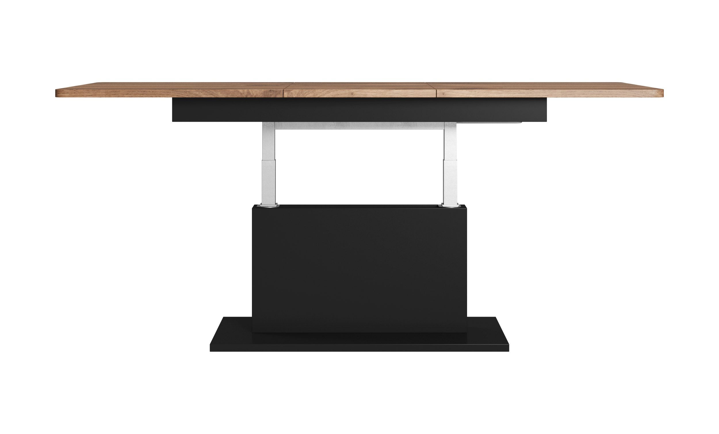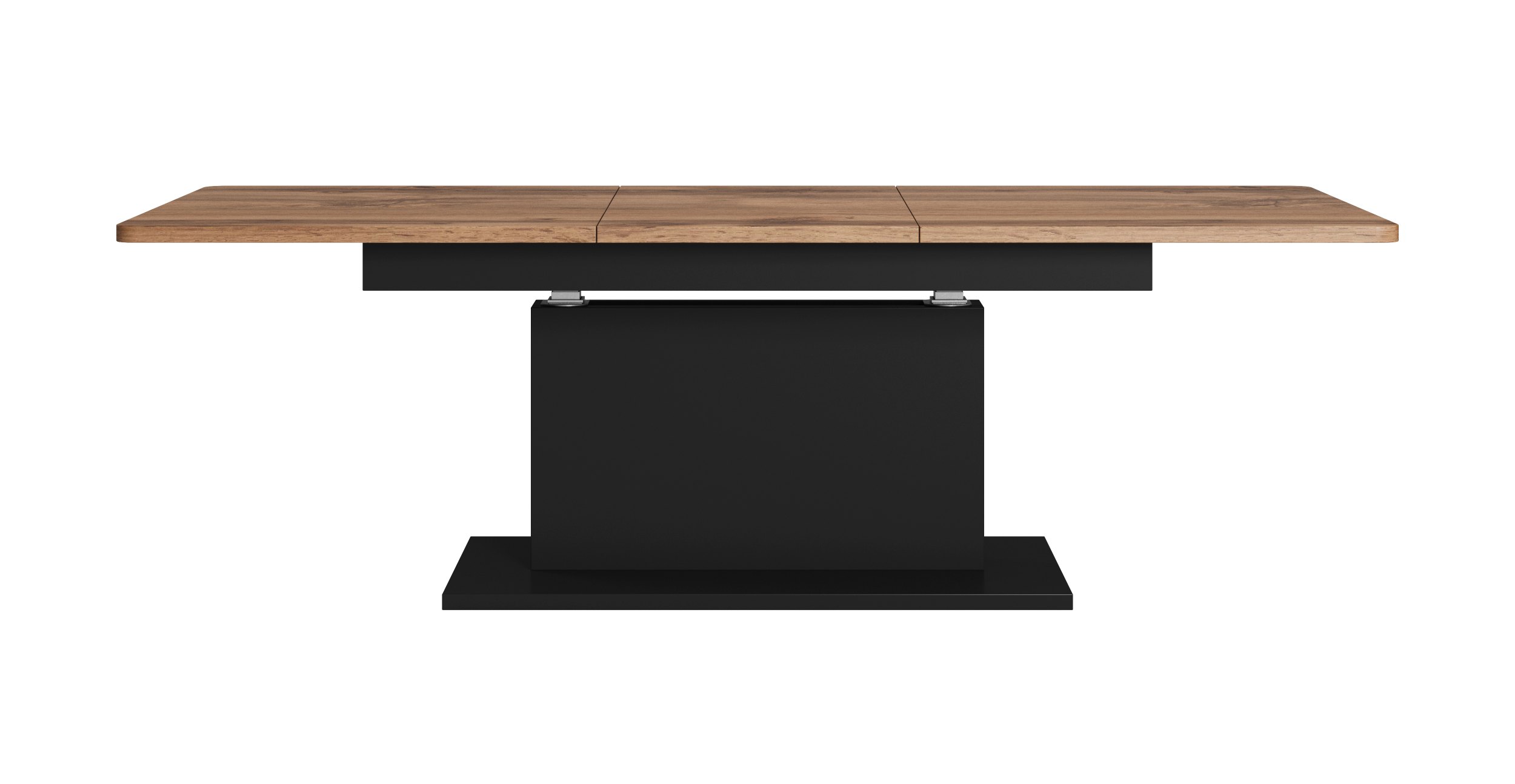 wymiary: 126-167/70/56-74 cm, ławostół rozkładany, materiał: płyta meblowa okleinowana, kolor: dąb wotan – czarny mat * poszczególne połówki blatu mogą różnić się układem usłojenia