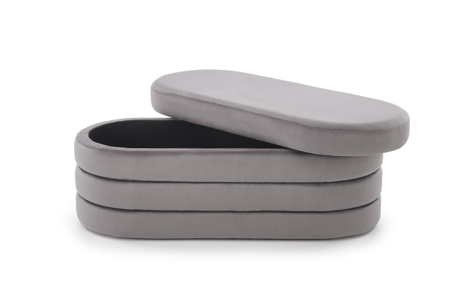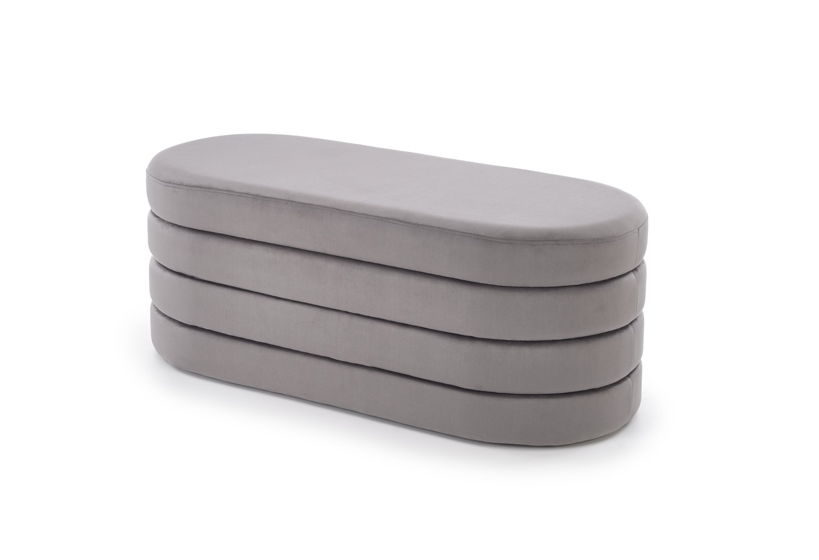 wymiary: 110/46/42 cm, ławka z funkcja pojemnika, materiał: tkanina – velvet, kolor: popielaty