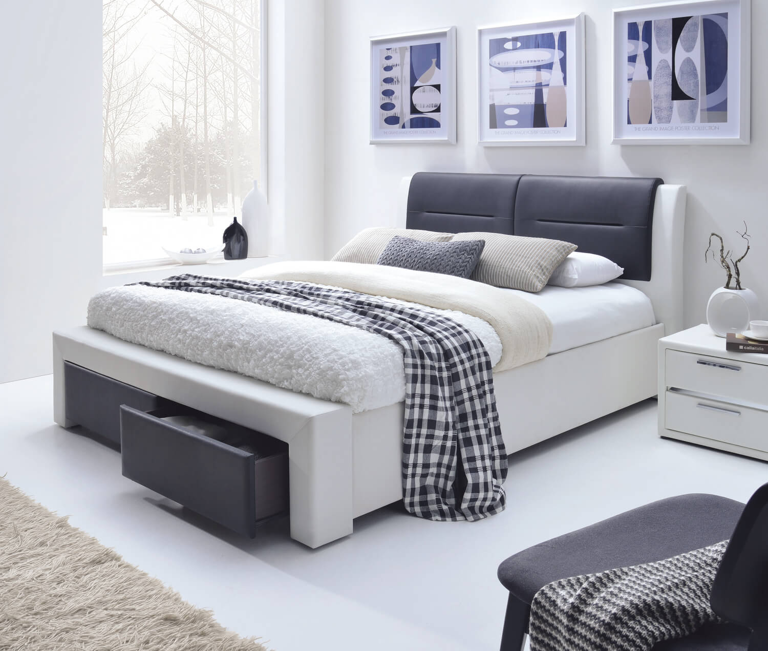wymiary: 152/225/99/39 cm, łóżko z szufladami materiał: eco skóra, kolor: biało-czarny