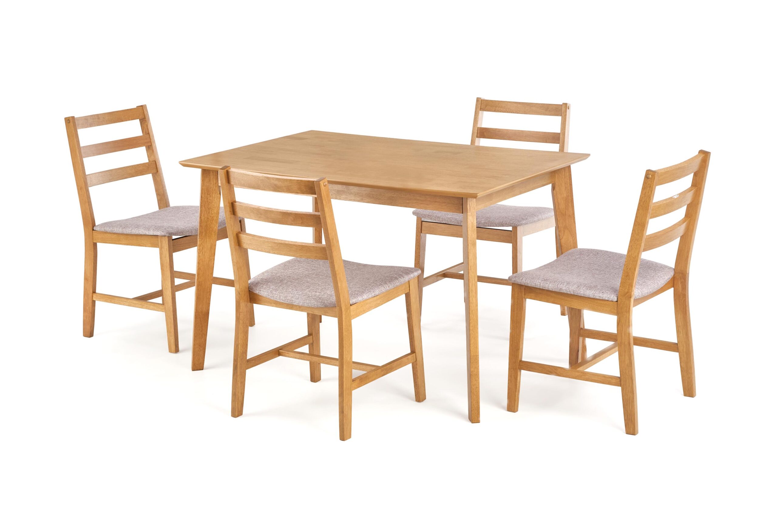wymiary: 120/80/75 cm, material: MDF + okleina naturalna / tkanina, kolor: drewno – jasny dąb, tapicerka – mokate