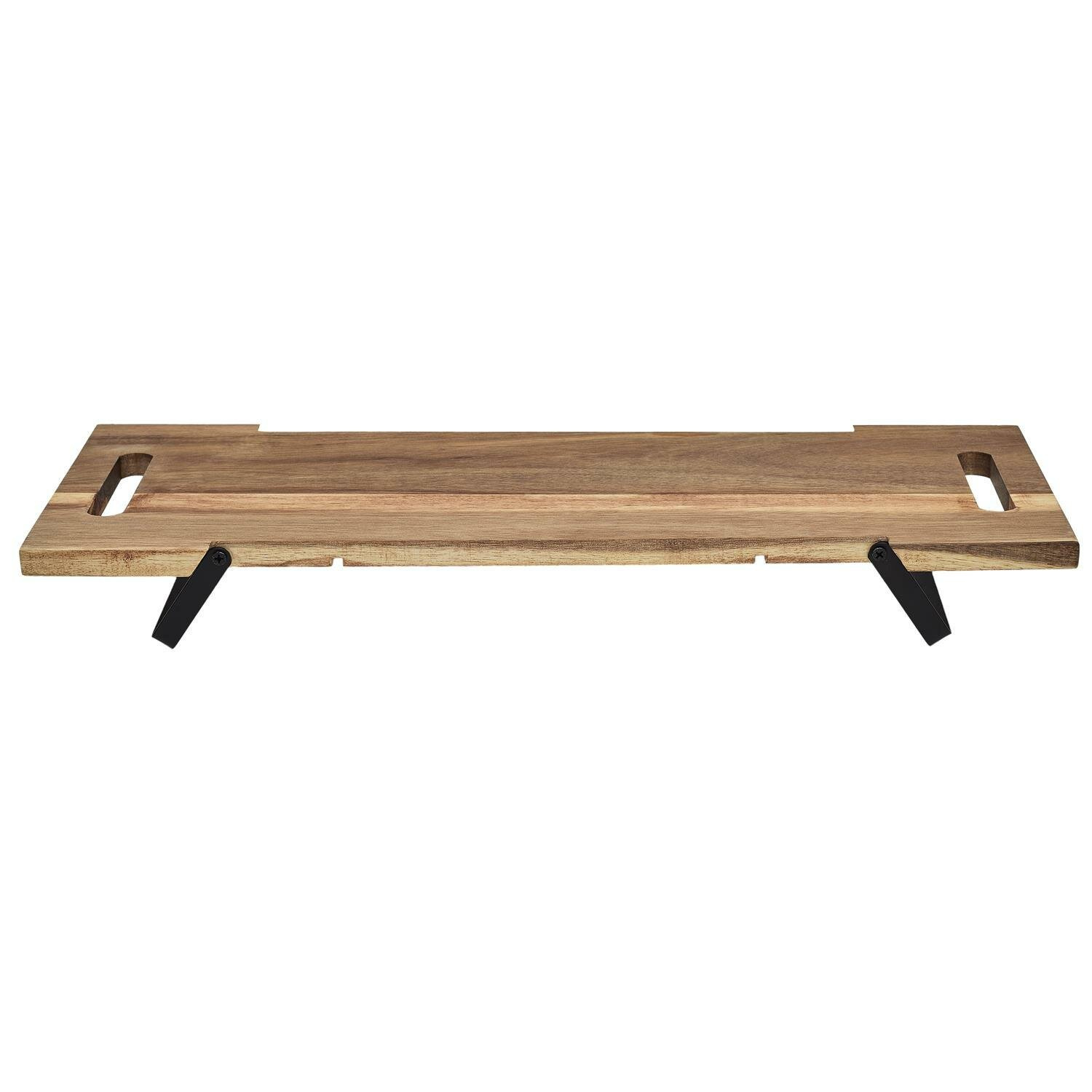 Elegancka deska ekspozycyjna o długości 55 cm, wykonana z wysokiej jakości drewna akacjowego i metalowej podstawy z żelaza. Jej solidna konstrukcja, z wysokością 7 cm i głębokością 18 cm, zapewnia stabilność i funkcjonalność. Naturalne wykończenie drewna akacjowego i nowoczesna metalowa podstawa dodają elegancji i stylu każdemu wnętrzu. Idealna do prezentacji dekoracji, roślin, książek lub innych przedmiotów, deska wprowadza nowoczesny akcent do domu, biura lub sklepu, łącząc estetykę z trwałością.