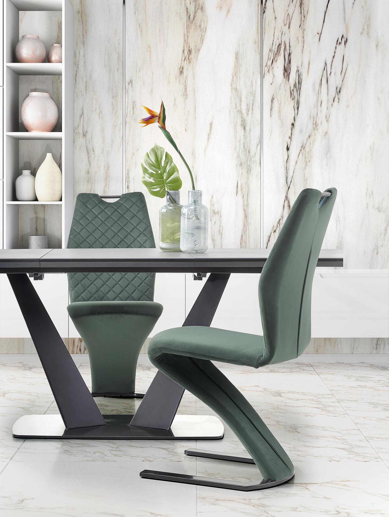 stół rozkładany, wymiary: 160-220/90/76 cm, materiał: szkło / MDF lakierowany / stal malowana proszkowo / stal nierdzewna, kolor: blat – ciemny popiel, nogi – czarny