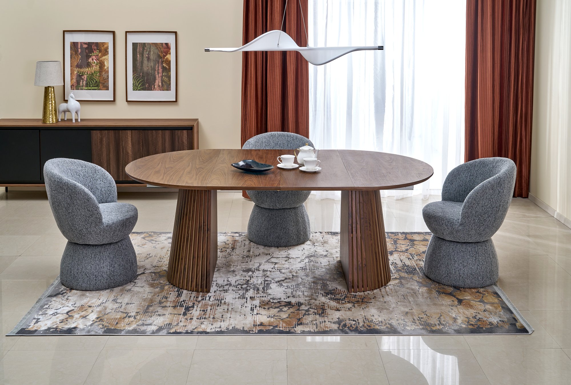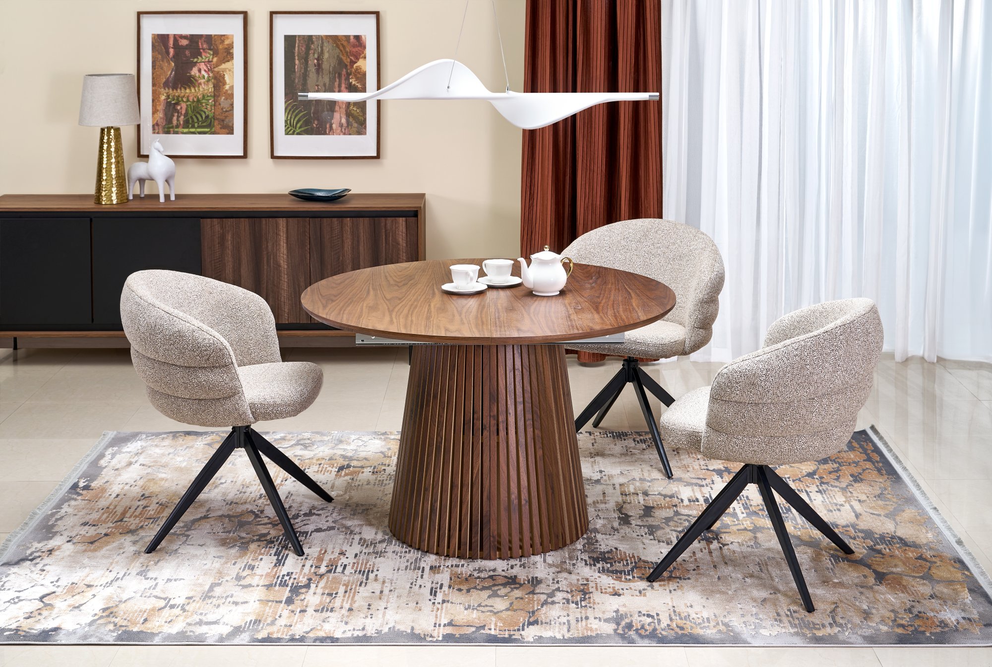 FARGO stół rozkładany, blat – orzechowy, nogi – orzechowy