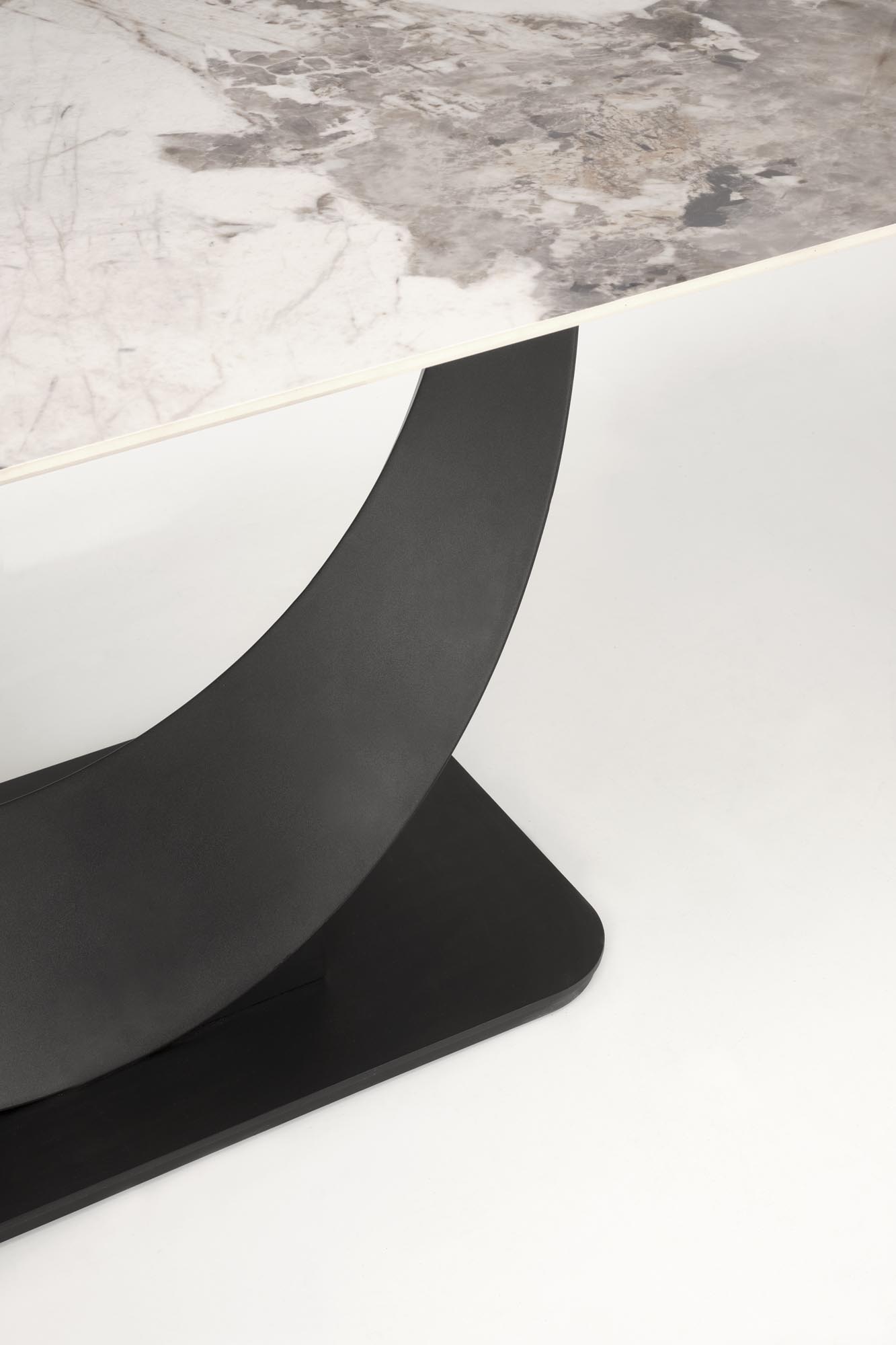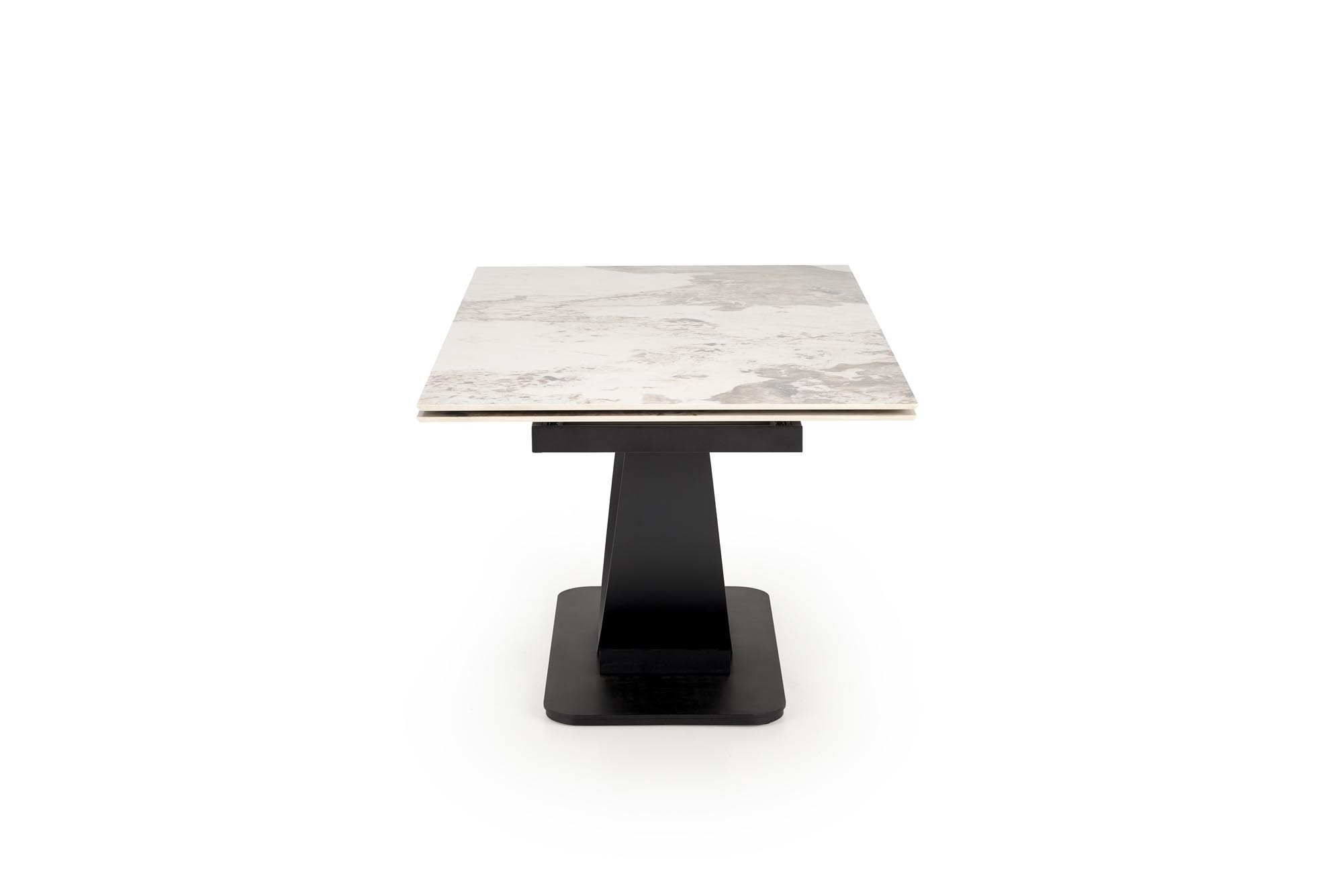 wymiary: 160-240/92/75 cm; stół rozkładany, materiał: spiek / stal malowana proszkowo, kolor: blat – beżowy marmur, nogi – czarny
