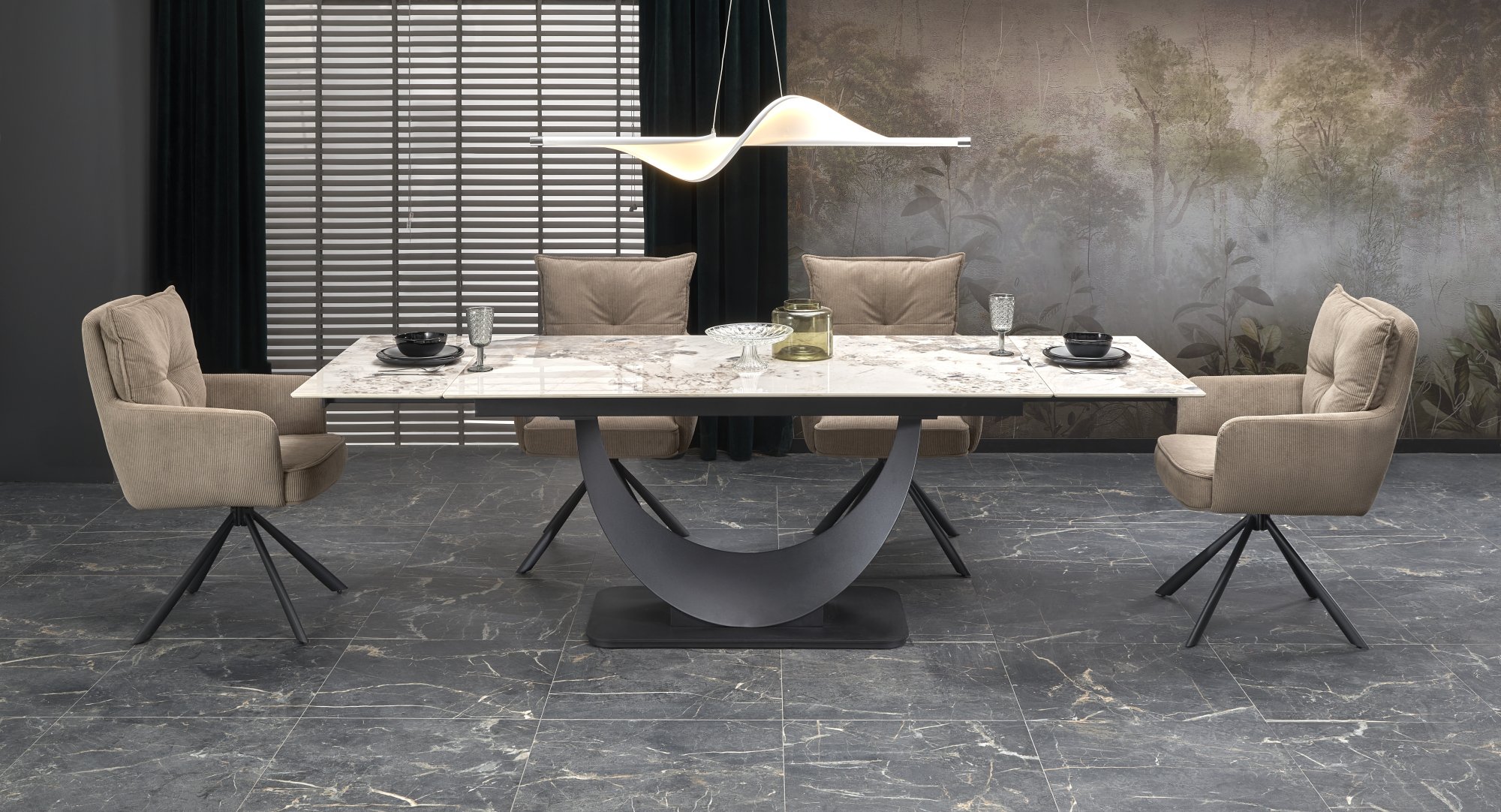 FERNANDO stół rozkładany, blat – biały marmur, nogi – czarny