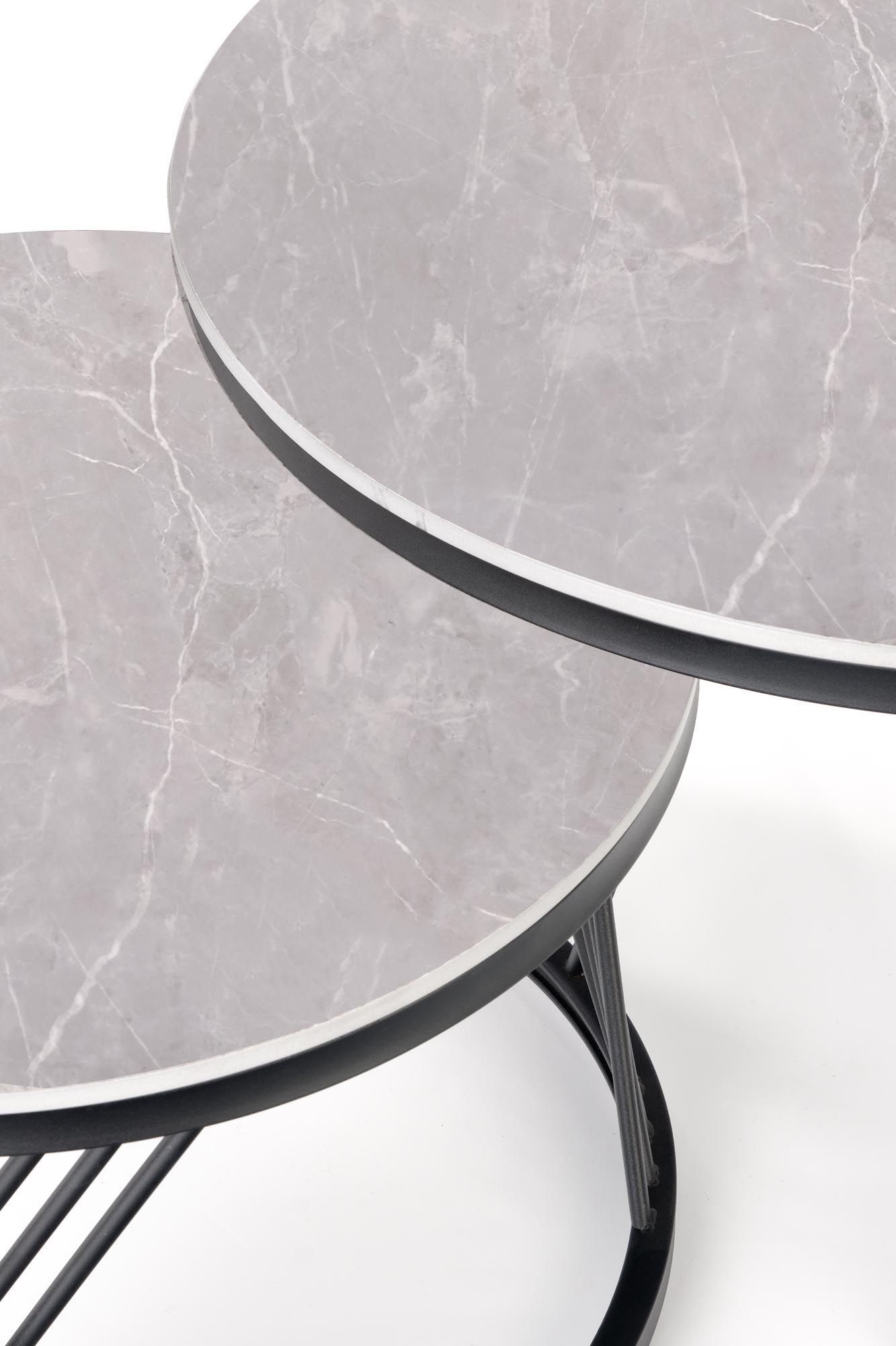 wymiary: fi60/40 cm oraz fi80/46 cm, zestaw 2 ław, materiał: spiek / stal malowana proszkowo, kolor: popielaty marmur