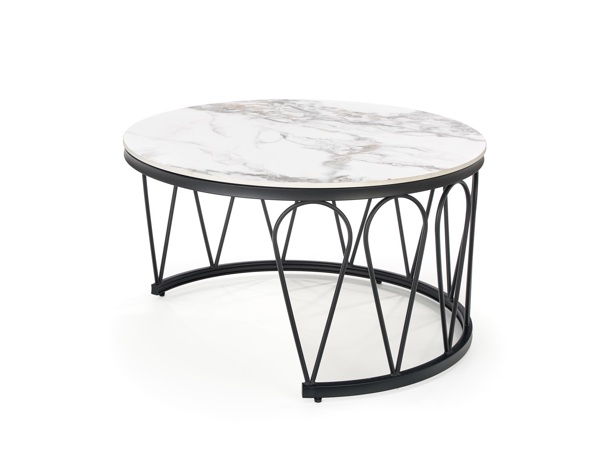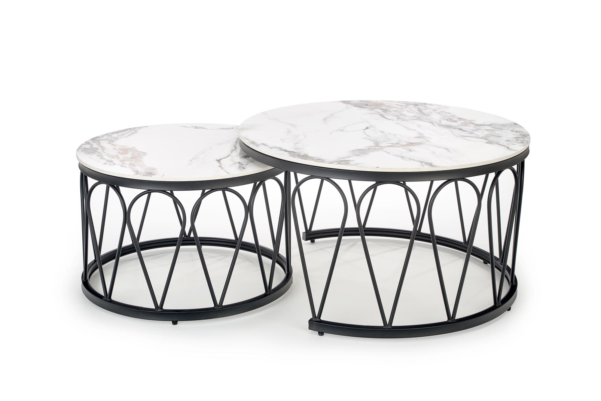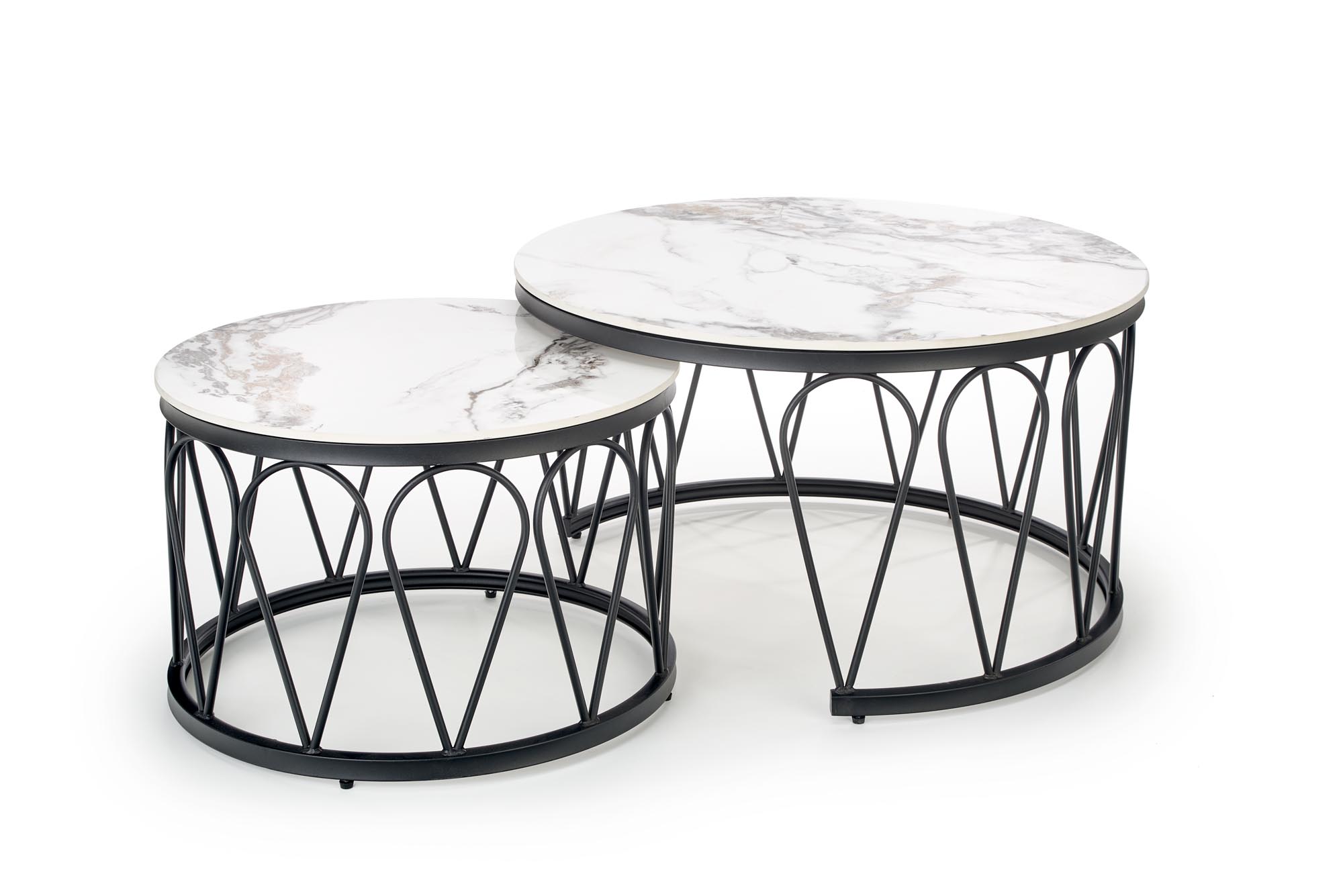 wymiary: fi60/40 cm oraz fi80/47 cm, zestaw 2 ław, materiał: spiek / stal malowana proszkowo, kolor: biały marmur