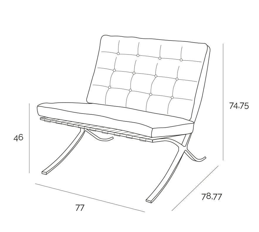 Fotel BA1 jestinspirowany projektem fotela Barcelona. Barcelona to zaprojektowany w 1929 roku fotel, który powstał na zamówienie i stanął w niemieckim pawilonie na wystawie w Barcelonie.,Charakterystycznie powyginana w kształt litery „X” chromowana podstawa oraz pikowana w kwadraty naturalna skóra to najbardziej charakterystyczne cechy tego fotela. Uzupełnieniem tego fotela jest Barcelona Ottoman i Barcelona,stolik.,Fotel wykonany całkowicie ze skóry naturalnej.