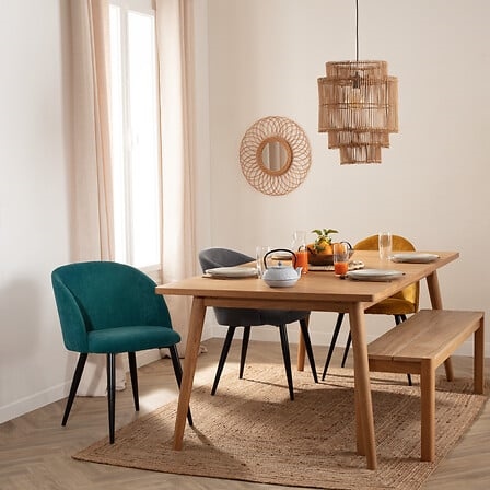 Idealny do sypialni lub kącika w salonie, sztruksowy fotel Celeste doda Twojemu wnętrzu przytulnego charakteru. Ciesz się komfortem i miękkością, jakie zapewnia fotel pokryty welurem! Fotel Celeste zaprasza do relaksu. Jego konstrukcja oraz nogi wykonane są z metalu, co czyni go solidnym meblem. Dodatkowo, sztruksowa tapicerka nada Twojemu wnętrzu elegancki, stylowy akcent. Możliwość ściągnięcia pokrowca: Nie Do samodzielnego montażu: Tak Gęstość tapicerki: 180 g/m3 Materiał tapicerki: Pianka poliuretanowa Materiał powłoki: Poliester Materiał konstrukcji: Żelazo, panel ze sklejki Materiał nóg: Żelazo Wymiary: Szer. 54 x Gł. 60 x Wys. 80 cm Wysokość siedziska: 48,5 cm
