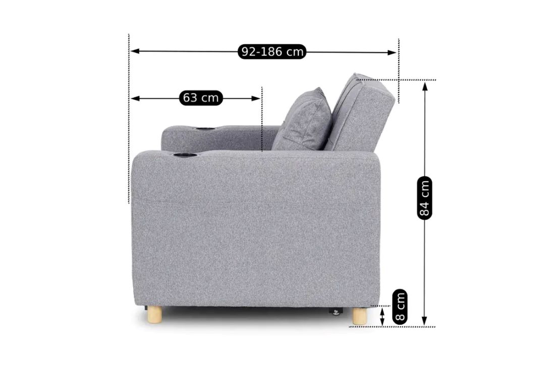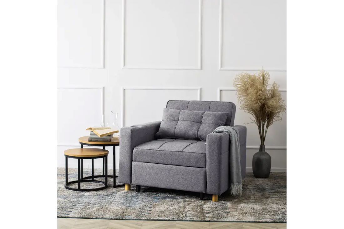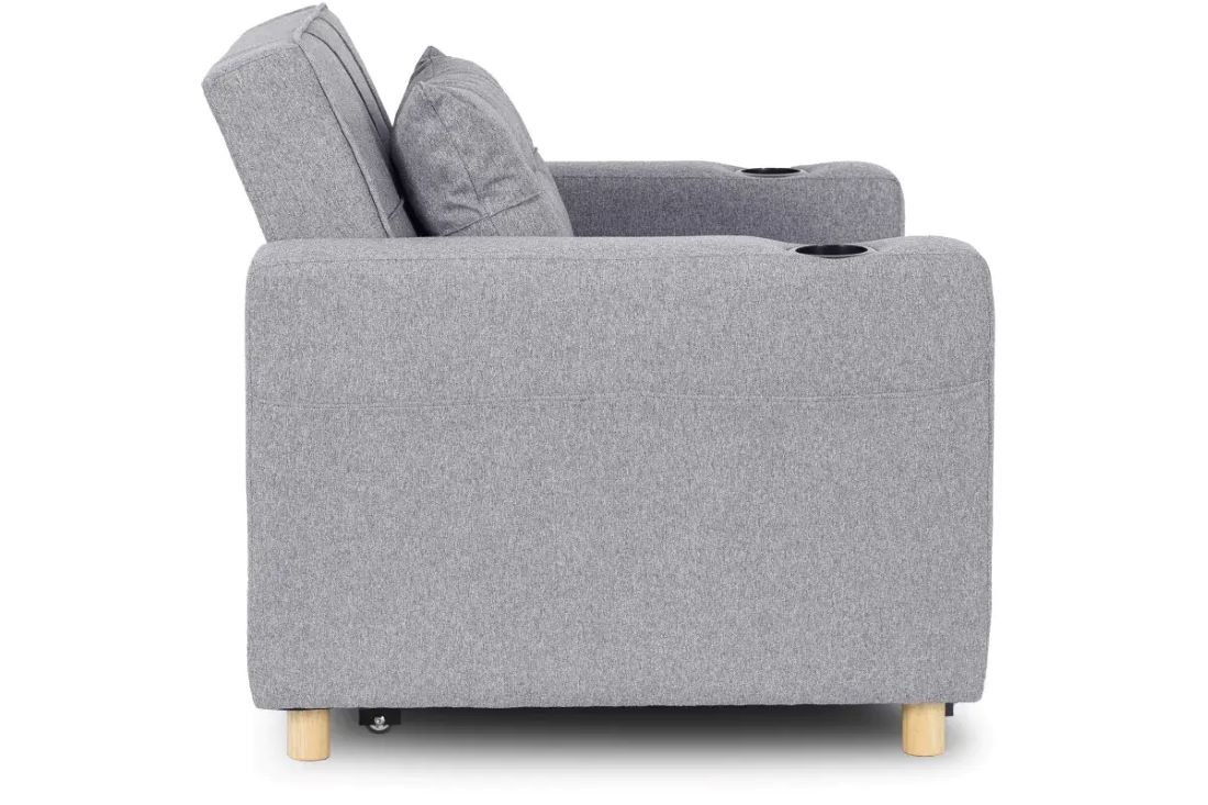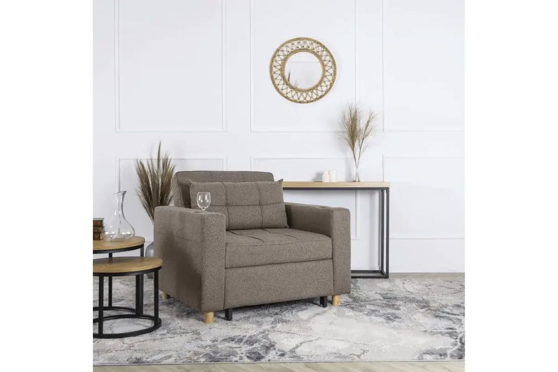 To idealne połączenie jednoosobowego łóżka i wygodnego fotela. Doskonale sprawdzi się jako uzupełnienie małych mieszkań.