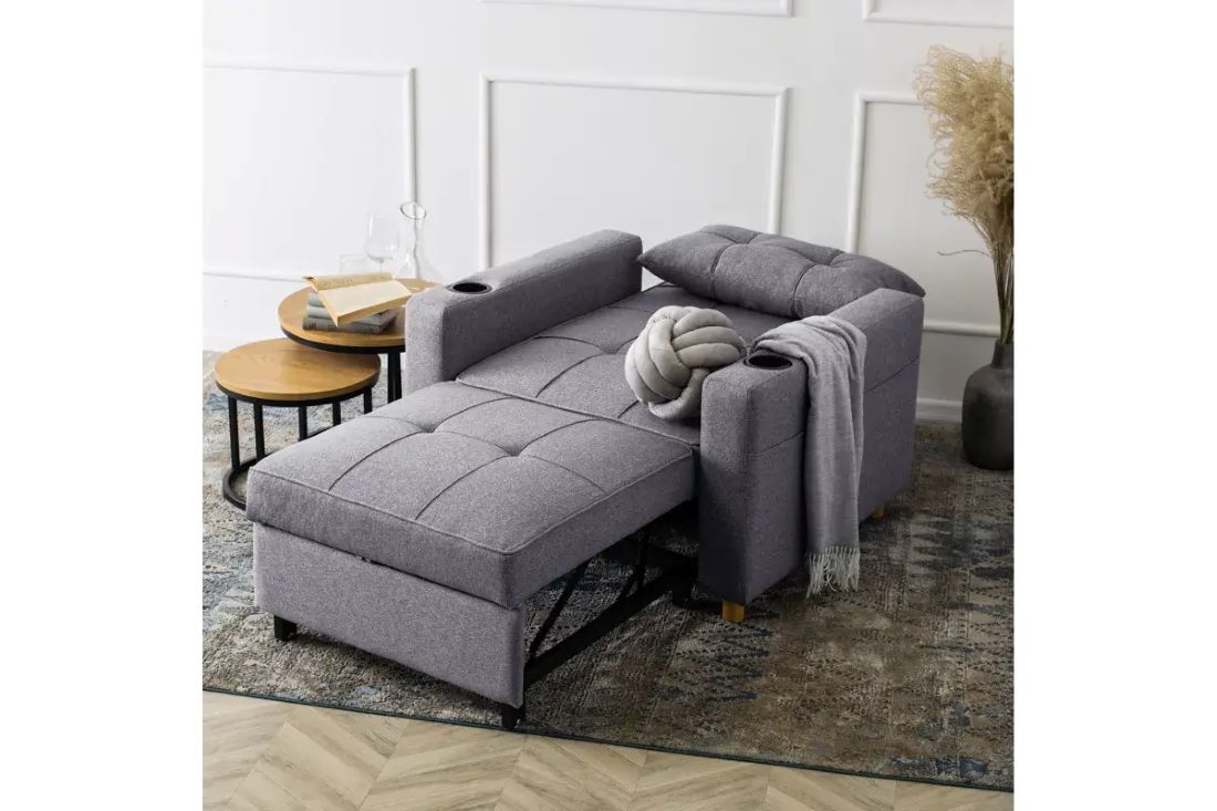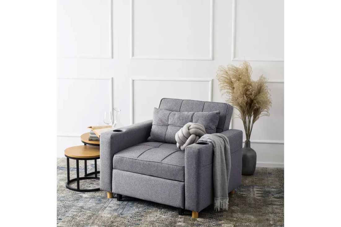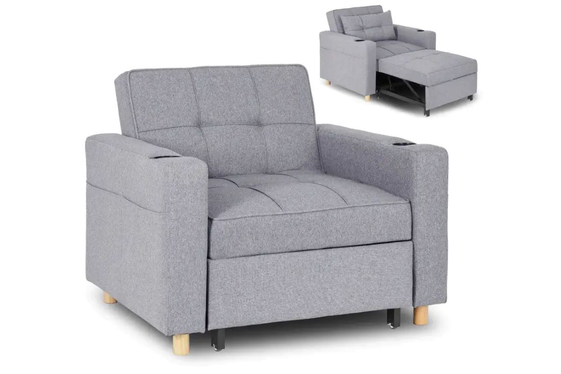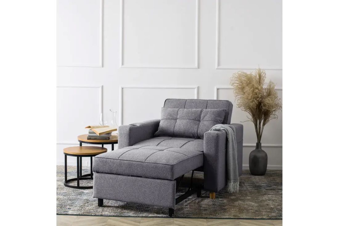 To idealne połączenie jednoosobowego łóżka i wygodnego fotela. Doskonale sprawdzi się jako uzupełnienie małych mieszkań.