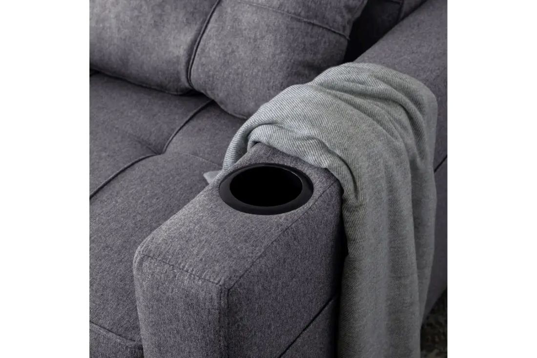 Fotel jest wyposażony w praktyczne wkłady na napoje umieszczone na obu podłokietnikach. Dzięki nim będziesz mieć zawsze ulubioną kawę, napój lub wodę pod ręką, bez konieczności wstawania z fotela!