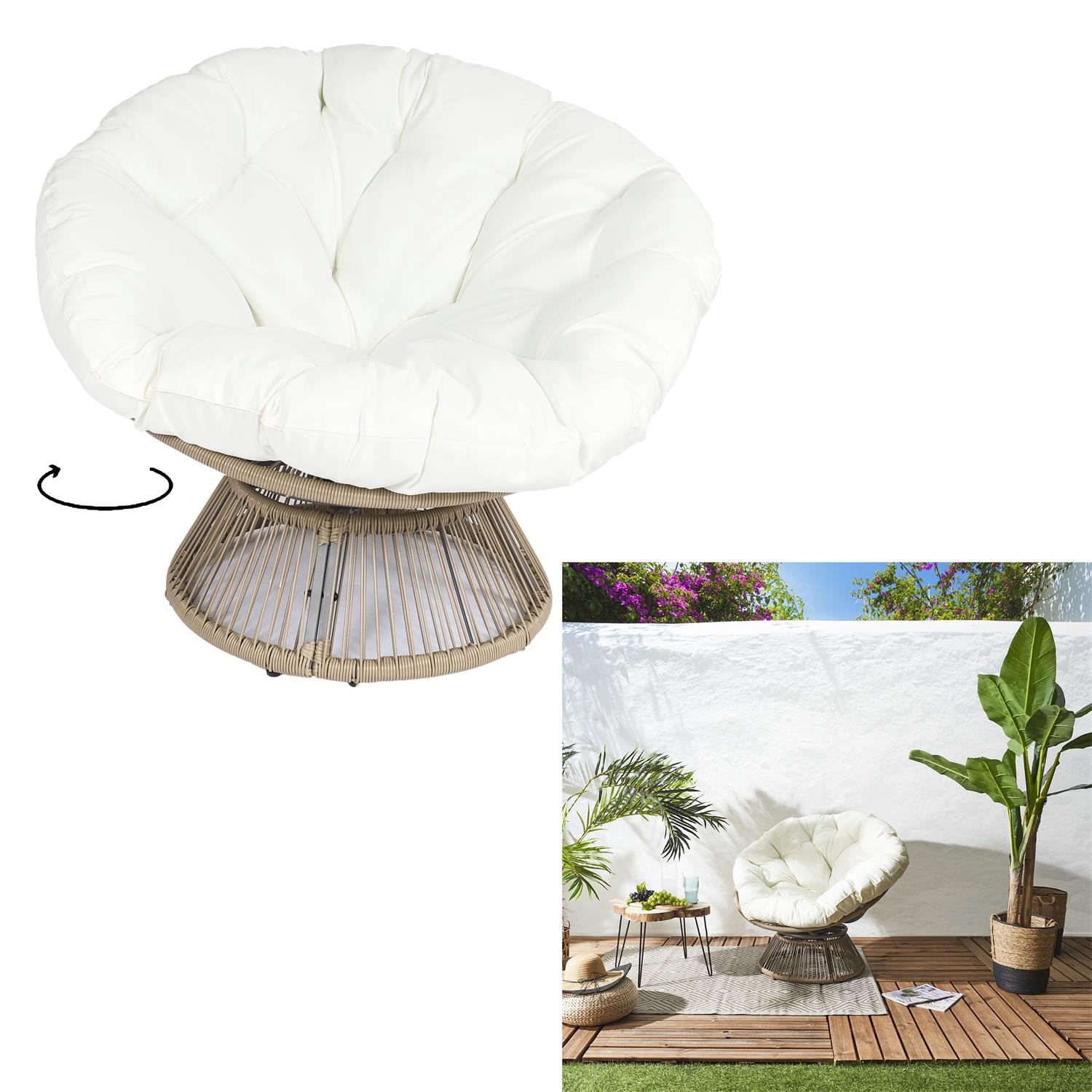 Fotel Nucan biały/ naturalny obrotowy