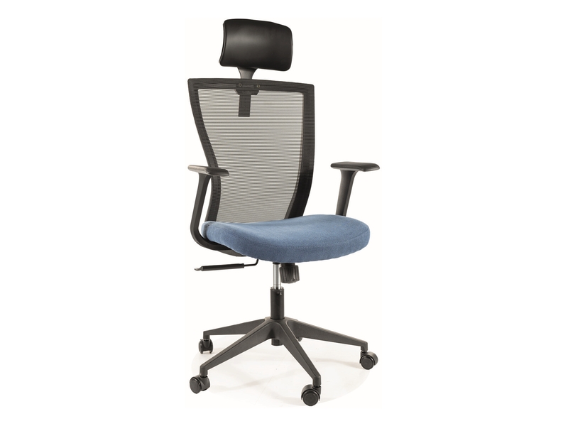 siatka / tkanina, kolor: czarny / niebieski, multiblock, reg. zagłówek , kółka kauczukowe, max 136kg
