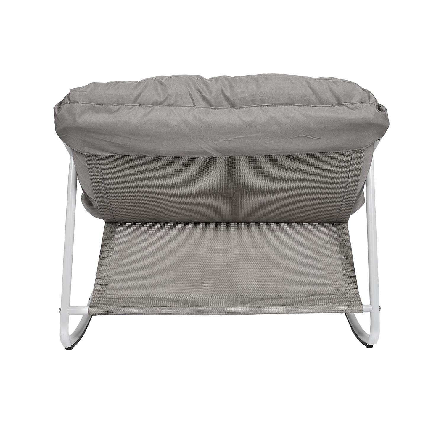 Fotel bujany idealny do relaksu zarówno w ogrodzie, jak i w domu. Wygodne siedzisko i oparcie wykończone miękkim materiałem poliestrowym. Stabilna stalowa rama zapewniająca trwałość i bezpieczeństwo użytkowania. Produkt zawiera instrukcję montażu. Waga produktu: 9,5 kg Rama: Metal – stal (52%) Części tekstylne (siedzisko i oparcie): Poliester (22%) Pianka wypełniająca: Pianka poliestrowa (22%) Plastikowe elementy (PET): 4% Fotel nie jest składany. Przeznaczenie: Użytku zewnętrzny i wewnętrzny. Odporność UV: Tak Zabezpieczenie epoksydowe: Tak Instrukcja montażu w zestawie: Tak