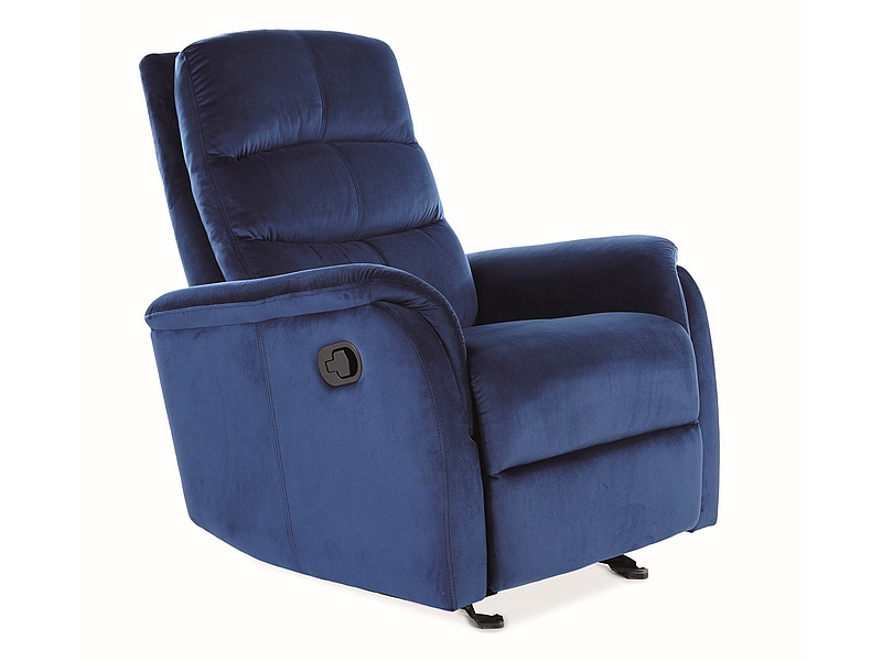 fotel rozkładany, z funkcją bujania, regulowany zagłówek, tkanina aksamit: Bluvel ,kolor granatowy, max.150kg