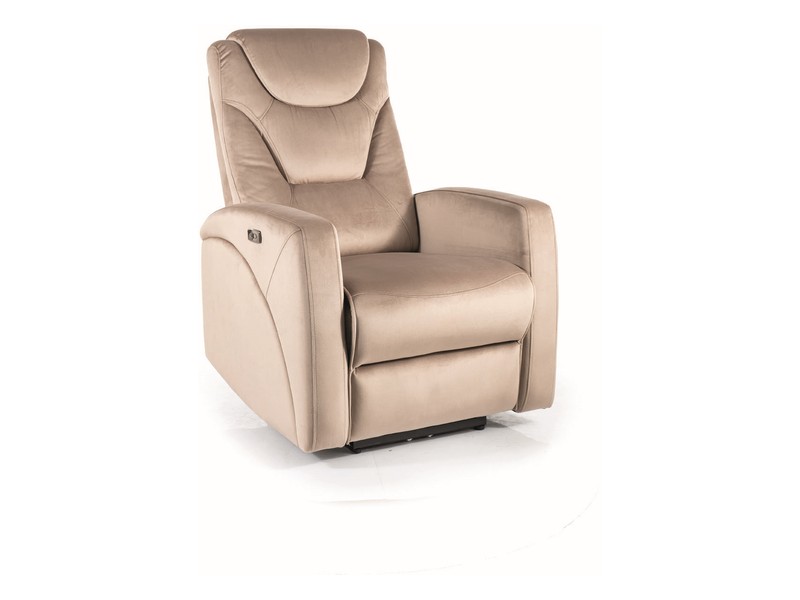 fotel rozkładany elektrycznie, port USB, tkanina aksamit: ciemny beż bluvel 40, max.150kg