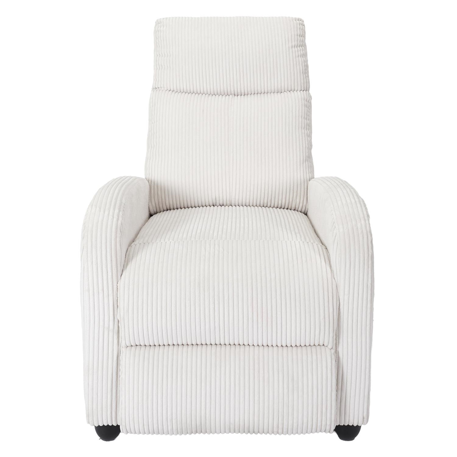 Fotel recliner w sztruksowej białej tkaninie to idealny mebel do salonu lub poczekalni. Rozkładany fotel pomaga w relaksie, a trzystopnowa możliwość ustawienia oparcia gwarantuje idealne i preferowane przez nas ułożenie ciała. Fotel rozkłądany ręcznie. 3 stopnie poziomu oparcia oraz 3 stopnie rozłożenia podnóżka. Max. obciążenie fotela: 120kg. Grubośc pianki tapicerskiej: 22kg/m3 Wymaga montażu. Nie nadaje się do użytku zewnętrznego. Tkanina 100% poliester.