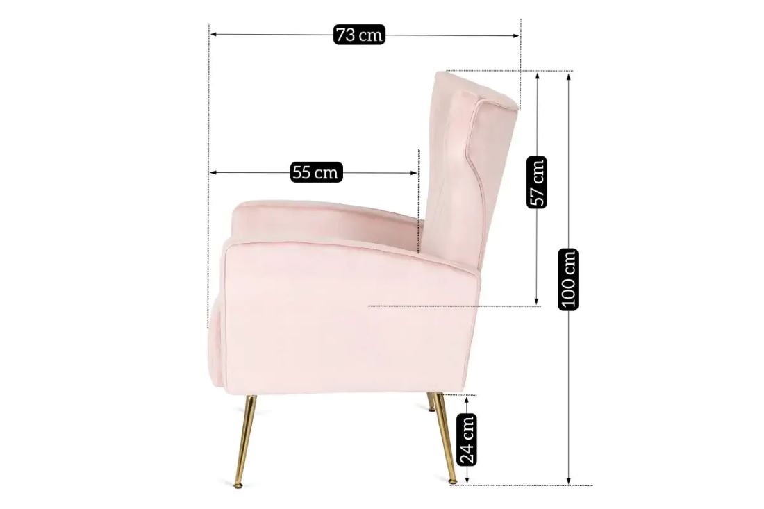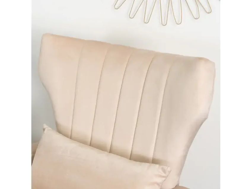 Fotel przyciąga wzrok swoją estetyką. Welurowa tapicerka oraz złote, chromowane nóżki nadają mu wyjątkowej elegancji. Delikatnie zwężające się ku dołowi, sprawiają, że fotel prezentuje się lekko, ale zapewnia niezwykłą stabilność.