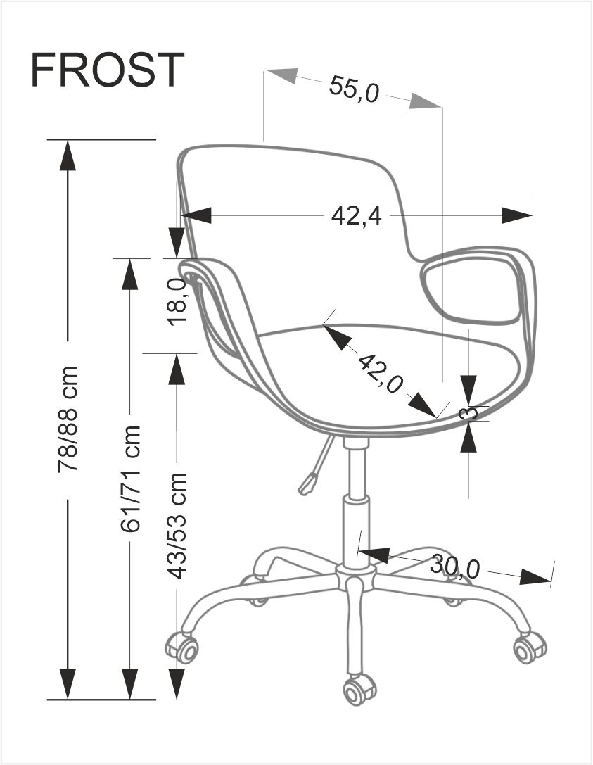 wymiary: 58/55/78-88/43-53 cm, mechinizm podstawowy, eko skóra / polipropylen, kolor: czarny