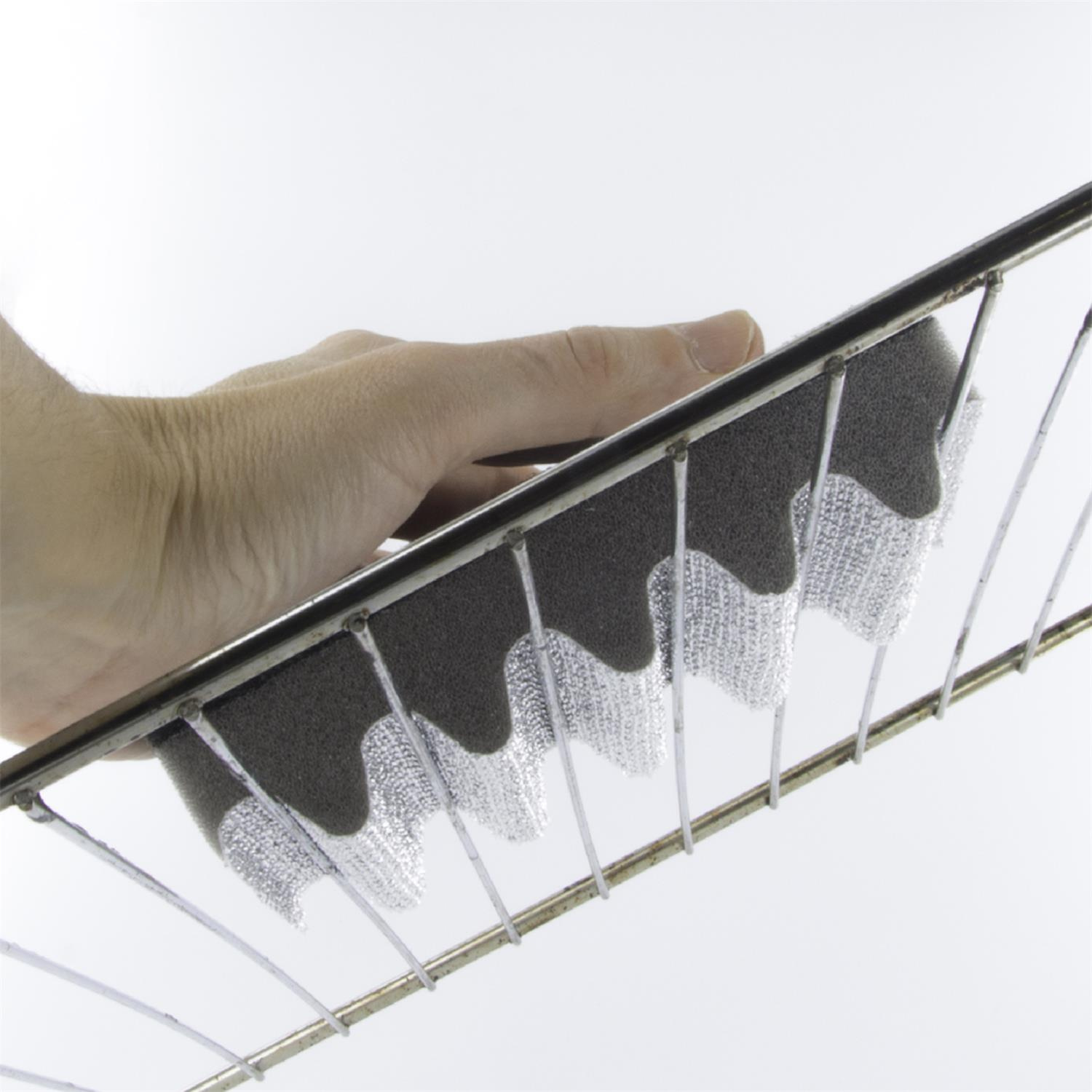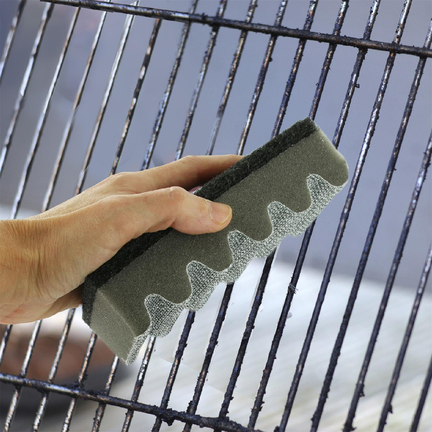 Gąbka do czyszczenia rusztu sprawdzi się nie tylko podczas grillowania, ale również podczas czyszczenia domowego piekarnika. Gombka z jednej strony wyposażona jest w pofalowaną, metaliczną strukturę, która idealnie czuści każdy szczebelek rusztu. Drugą, bardziej miękką stroną gąbki możemy przetrzeć delikatniejsze częsci piekarnika oraz grilla.
