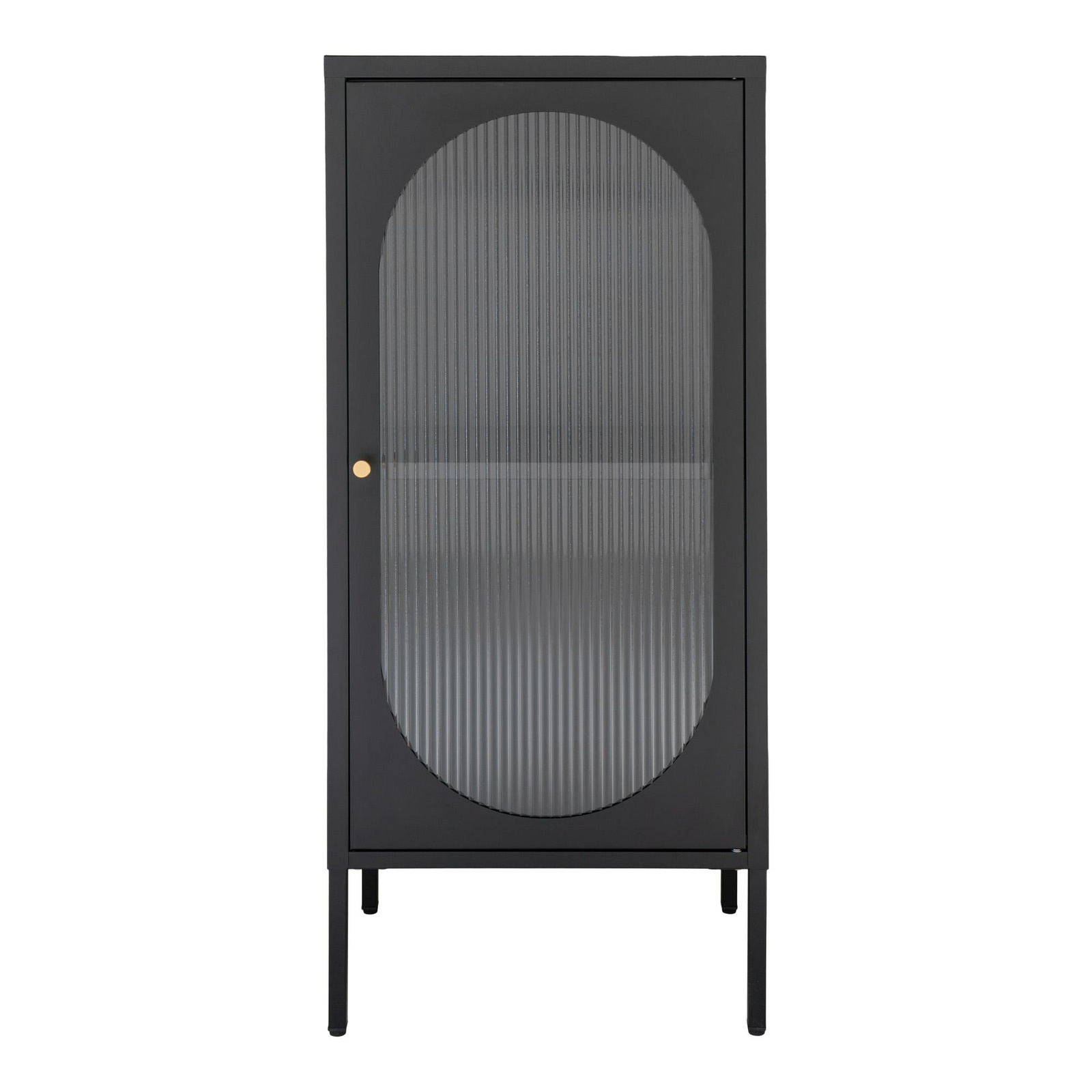 Gablota, 1 drzwi z ryflowanego szkła, stal, czarny