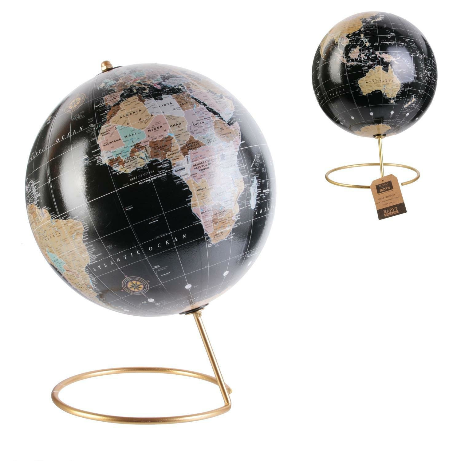 Metalowy globus w spokojnej kolorystyce będzie ciekawym elementem ozdobnym biura lub salonu.Ta ziemska kula spektakularnie umieszczona na podstawie zachwyci fanatyków podróży. Wymiary: 21,5x29x21,5 cm