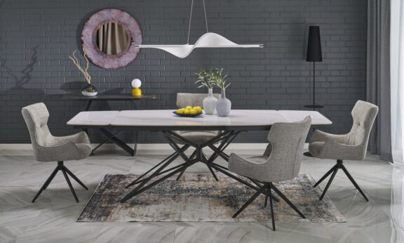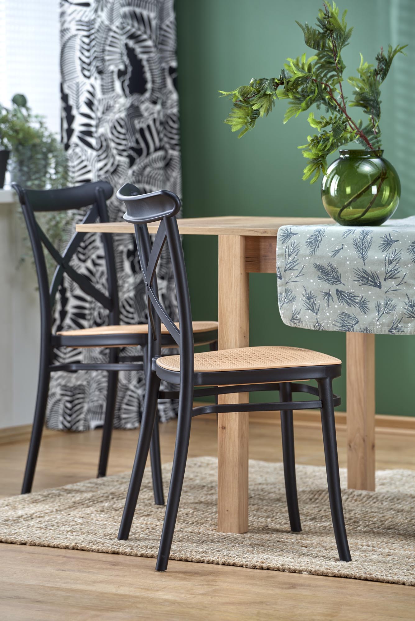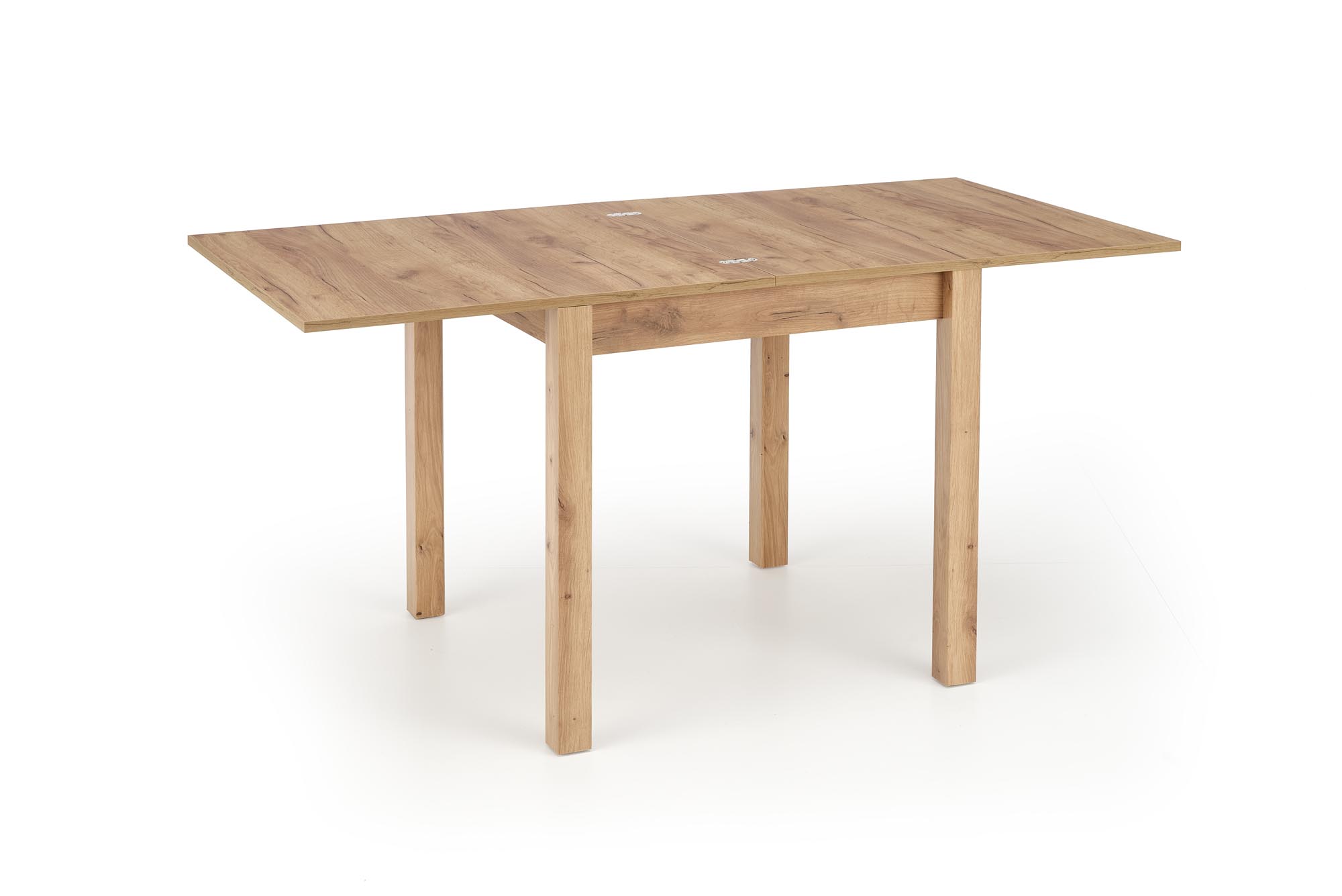 stół rozkładany, wymiary: 80÷160/80/76 cm, materiał: blat – płyta laminowana, na obrzeżach ABS, nogi – MDF laminowany, kolor: dąb craft