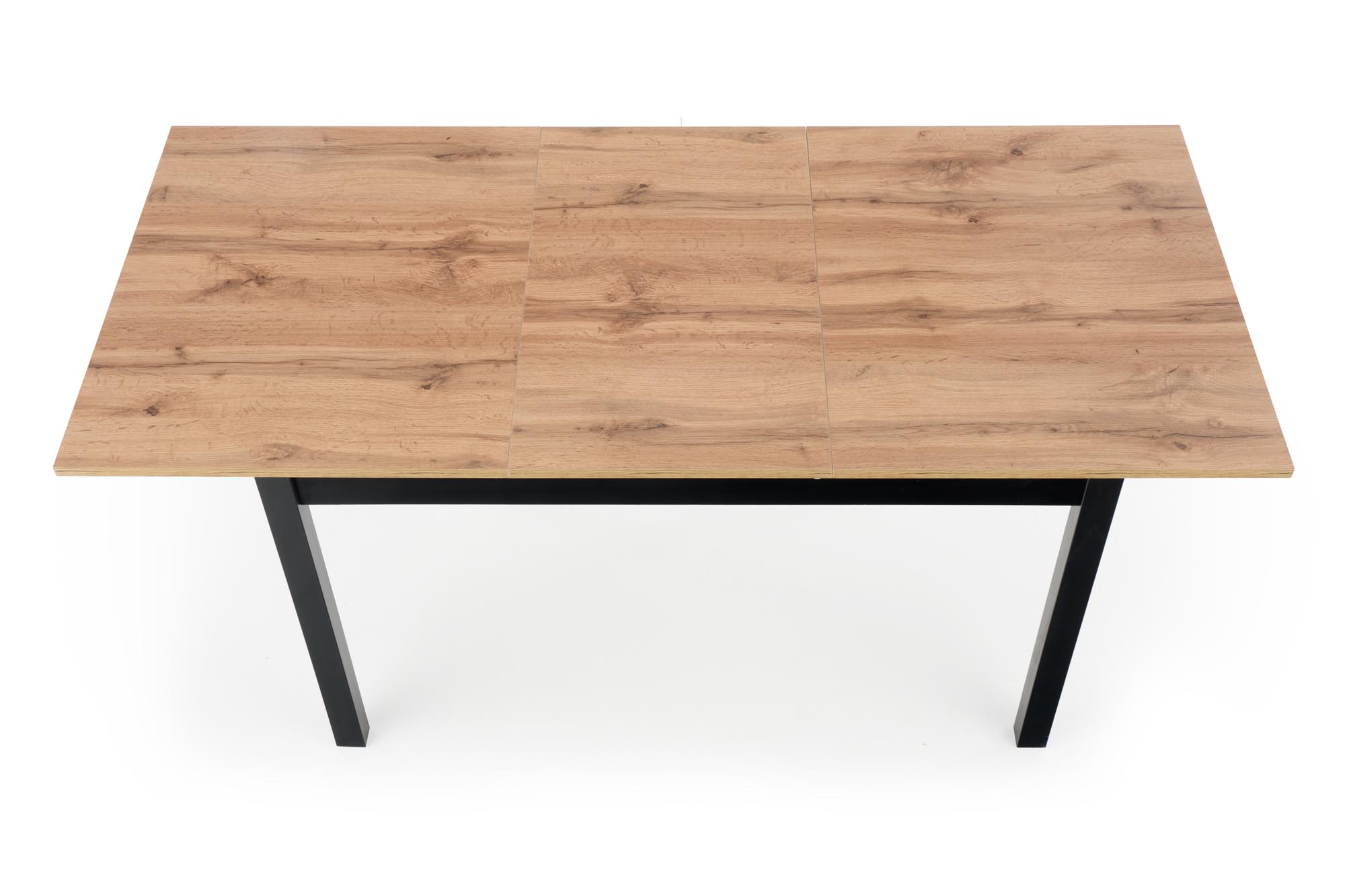 stół rozkładany, wymiary: 124-168/74/75 cm, materiał: płyta meblowa okleinowana, kolor: dąb wotan – czarny