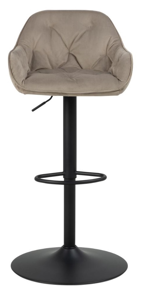 Niezależnie od tego, czy wolisz rano napić się kawy, czy szukasz miejsca na popołudniową przekąskę, ten stołek barowy z regulacją wysokości jest idealny do takich scenariuszy. Siedzisko jest tapicerowane miękką beżową aksamitną tkaniną i ozdobione drobnymi pikowaniami, które dodają romantycznego uroku. Uzupełniony o malowaną proszkowo na czarno stalową podstawę w kształcie trąbki, stołek barowy jest stabilny i zapewnia przyjemne doznania. Stołek barowy z delikatnym pikowaniem . Wykonany z materiałów ognioodpornych Tapicerowany beżową tkaniną aksamitną o ciekawej teksturze i miłej w dotyku. Czarna, malowana proszkowo metalowa podstawa w kształcie trąbki . Wysokość siedziska można regulować w zakresie 63-84 cm dzięki podnośnikowi gazowemu . Obrotowy i wyposażony w podnóżek. Wysokość oparcia; 26 cm Max. wysokość hokera 109cm, Min. wys. hokera: 88 cm Wymiary kartonu: 57x53x61cm Max 2 szt w kartonie. Wymaga montażu. Max obciążenie 110 kg