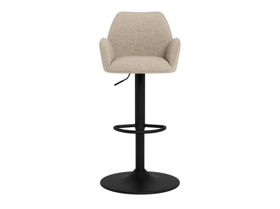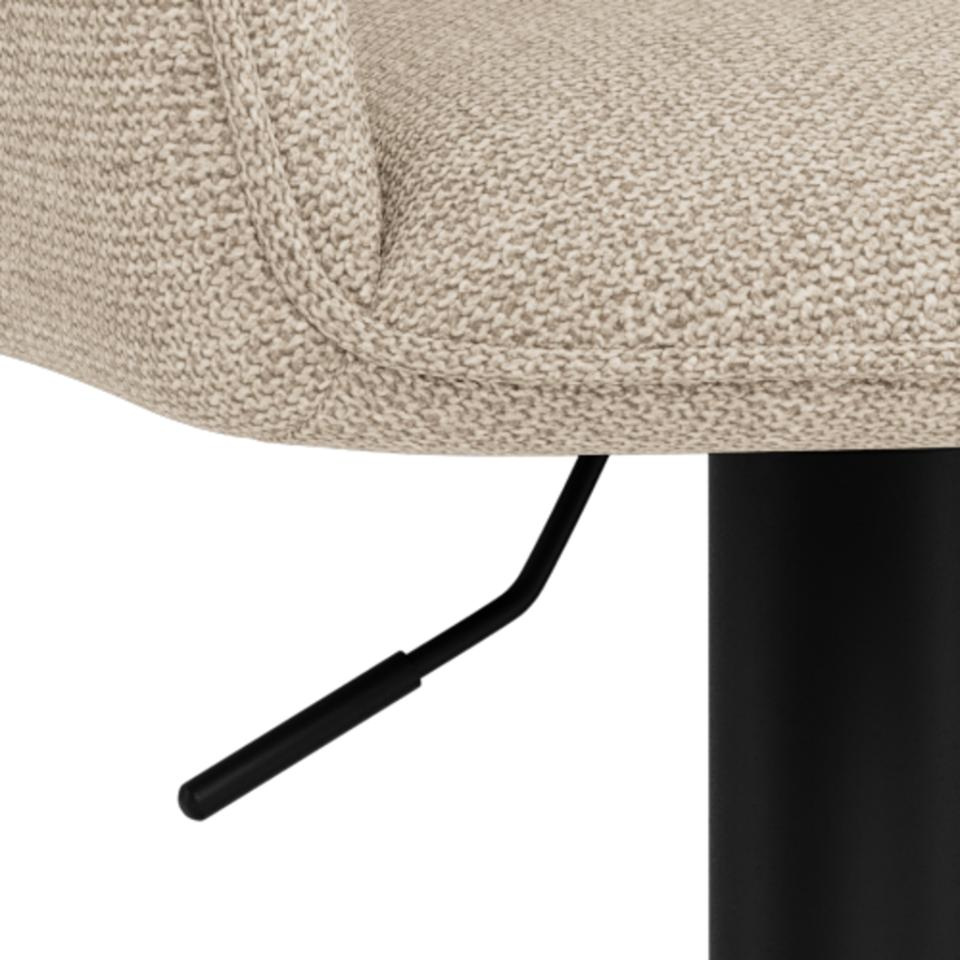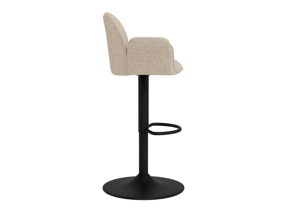 Hoker barowy Glenda, tkanina Basel beż 24, podstawa w kształcie trąbki, matowa, czarna, szorstka stal malowana proszkowo, z podnóżkiem, podnośnikiem gazowym, uchwytem i obrotem.