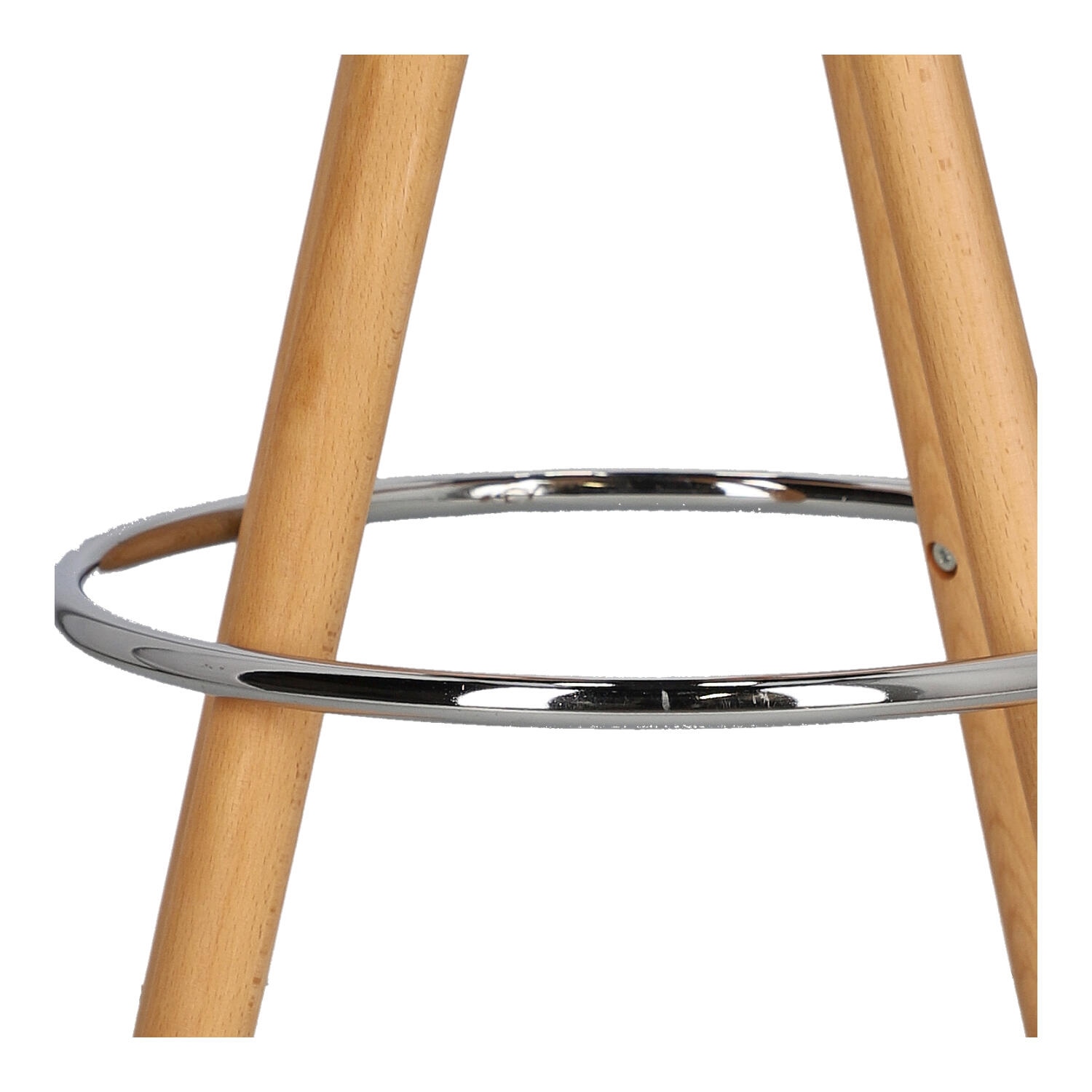 Hoker Nord o idealnie wyprofilowanym siedzisku to łatwy w czyszczeniu stołek barowy, który sprawdzi się jako mebel do wyspy kuchennej lub jako siedzisko przy barze. Podstawa stołka to drewniane bukowe nogi, które otacza metalowa, chromowana obręcz. Stabilne nogi łączą się z siedziskiem w jednym centralnym miejscu. Siedzisko wykonane z polipropyleniu dla wygody użytkowania wyposażone zostało w poduszkę z eko-skóry. Poduszka przyczepina został na stałe. Materiał siedziska: Polipropylen+ poduszka ze skóry ekologicznej Materiał nóg: lite drewno bukowe Szerokość siedziska: 38cm Waga: 5kg Wymaga montażu. Maksymalne obciążenie: 120kg. Max. 2 szt w kartonie. Wymiary kartonu: 91,5×24,5x42cm